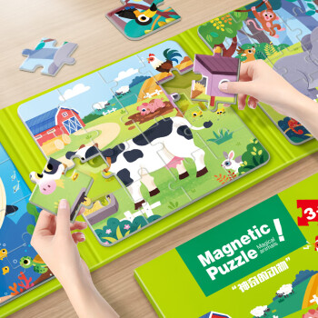 大眼小娃神奇动物48片3合1磁性拼图磁力拼板儿童玩具3-6岁