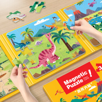 大眼小娃恐龙大陆75片3合1磁性拼图磁力拼板儿童玩具3-6岁