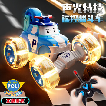 奥智嘉正版珀利POLI遥控汽车儿童玩具男孩扭变翻斗特技车生日