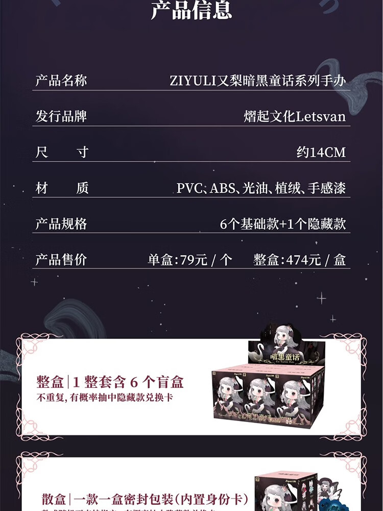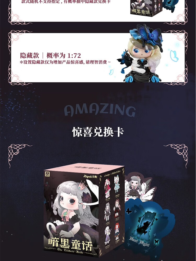又梨暗黑黑暗童话盲盒手办女孩潮玩摆件公仔创意女生单个盲盒随机发(拍6个发整盒)