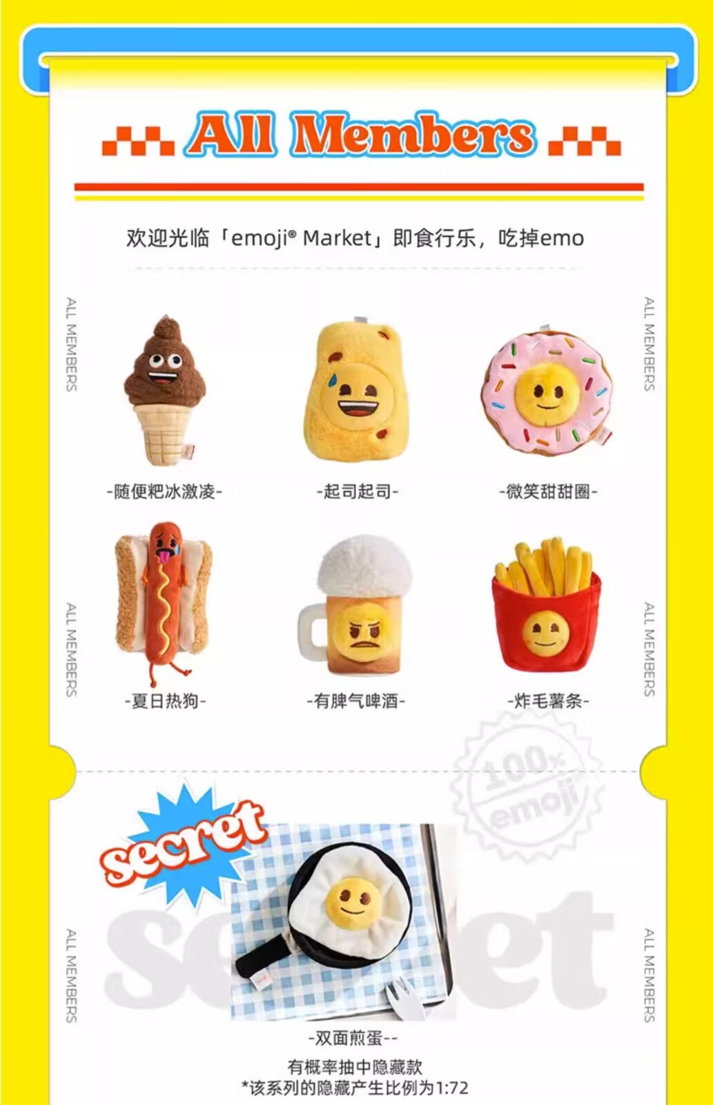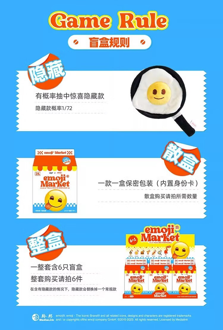 VEFemojiMarket即食行乐系列毛绒挂件盲盒公仔礼物单个盲盒随机发(拍6个发整盒)