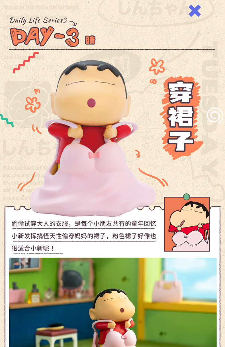 蜡笔小新日常系列3盲盒动漫潮玩摆件手办女孩生日礼物女生单只盲盒