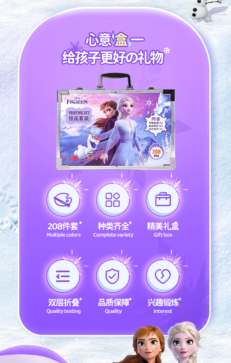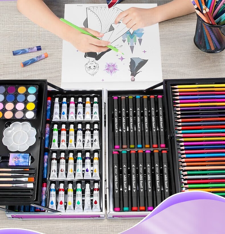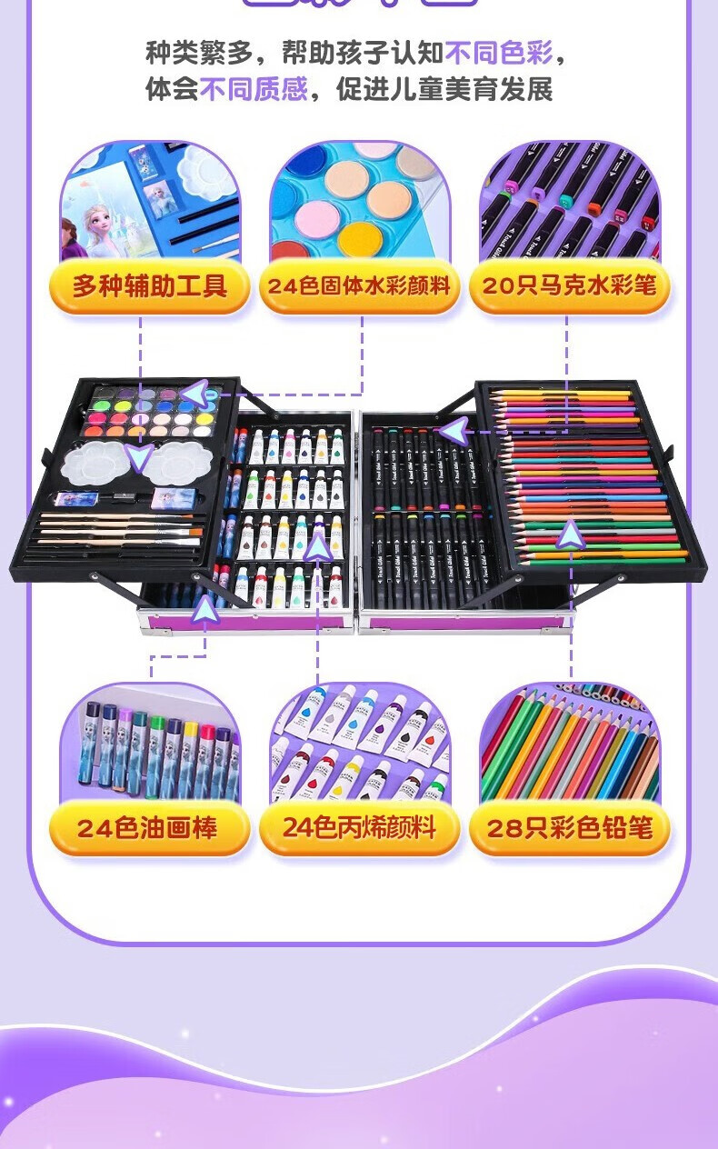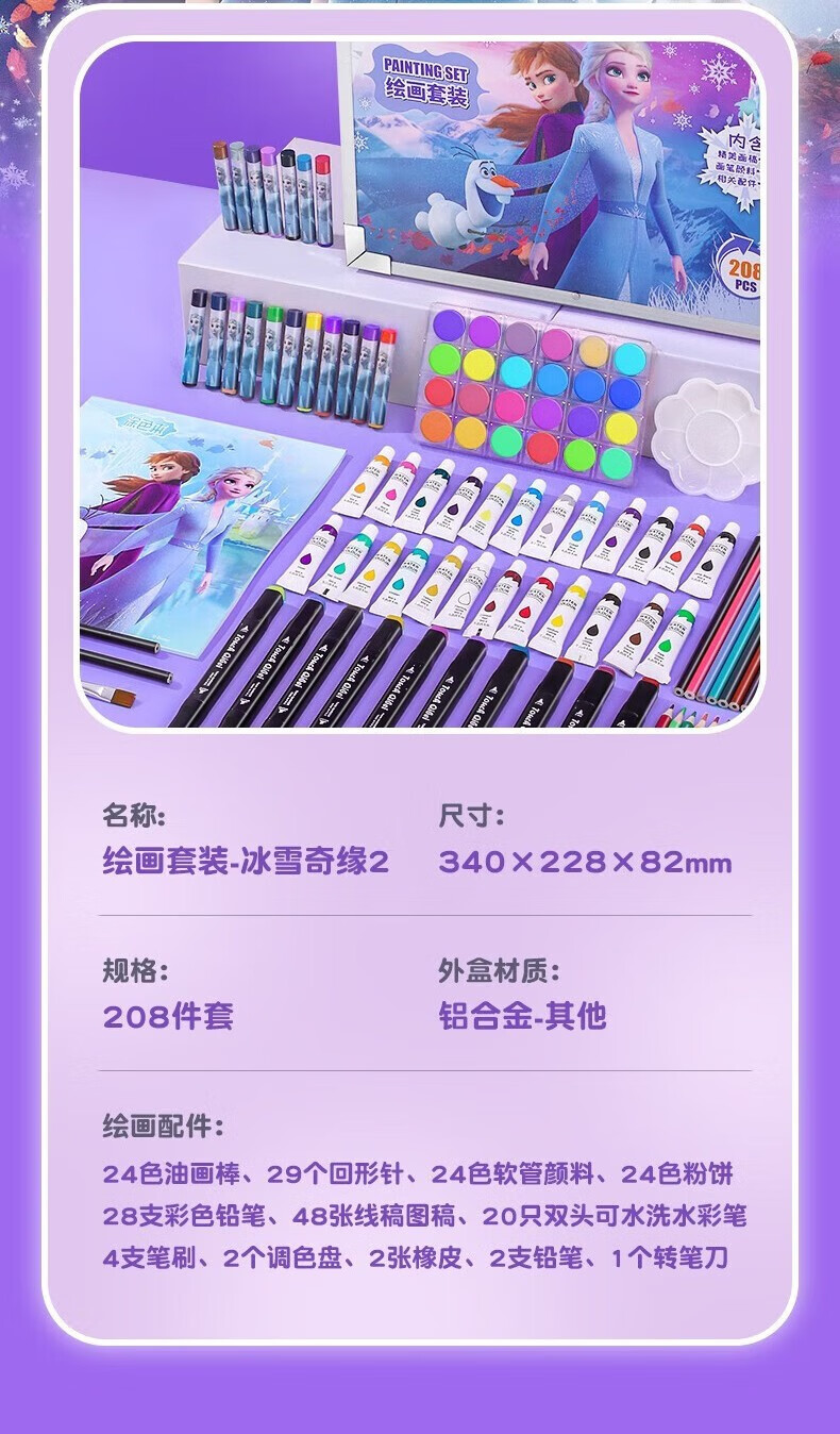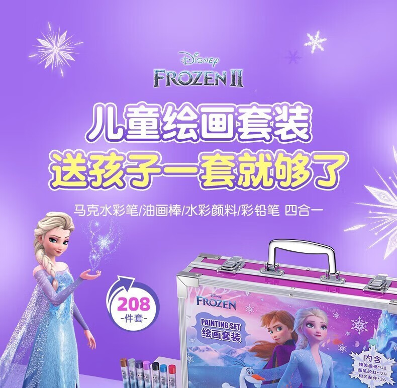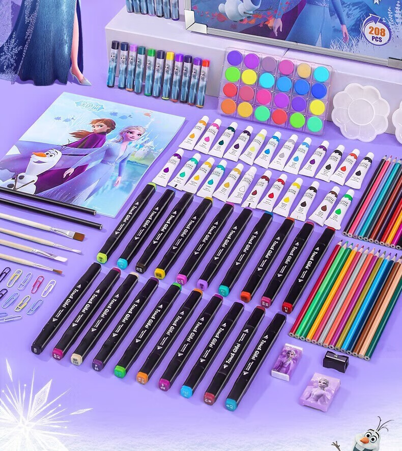 迪士尼儿童玩具6-10岁小女孩生日礼物7-14岁男孩8-12岁爱莎公主画画套装冰雪奇缘208件套【礼盒款】男童女童5-9岁十岁早教益智玩具