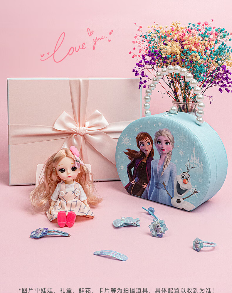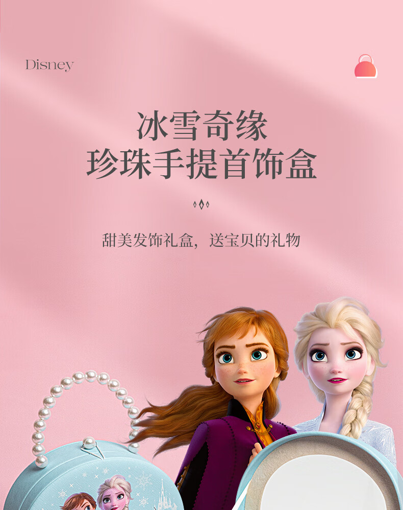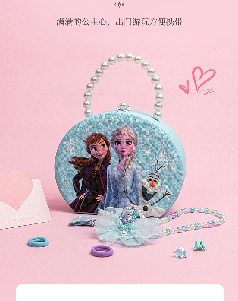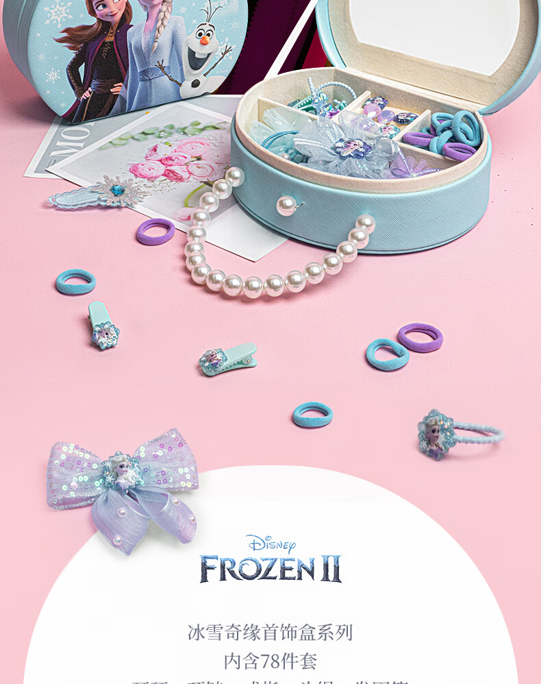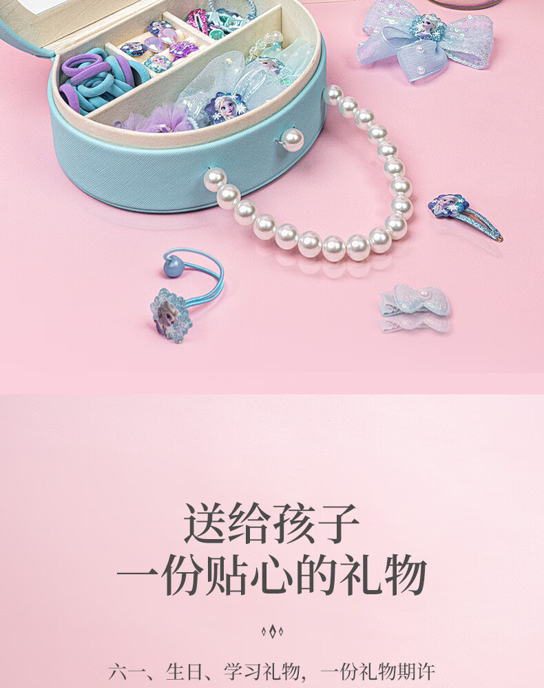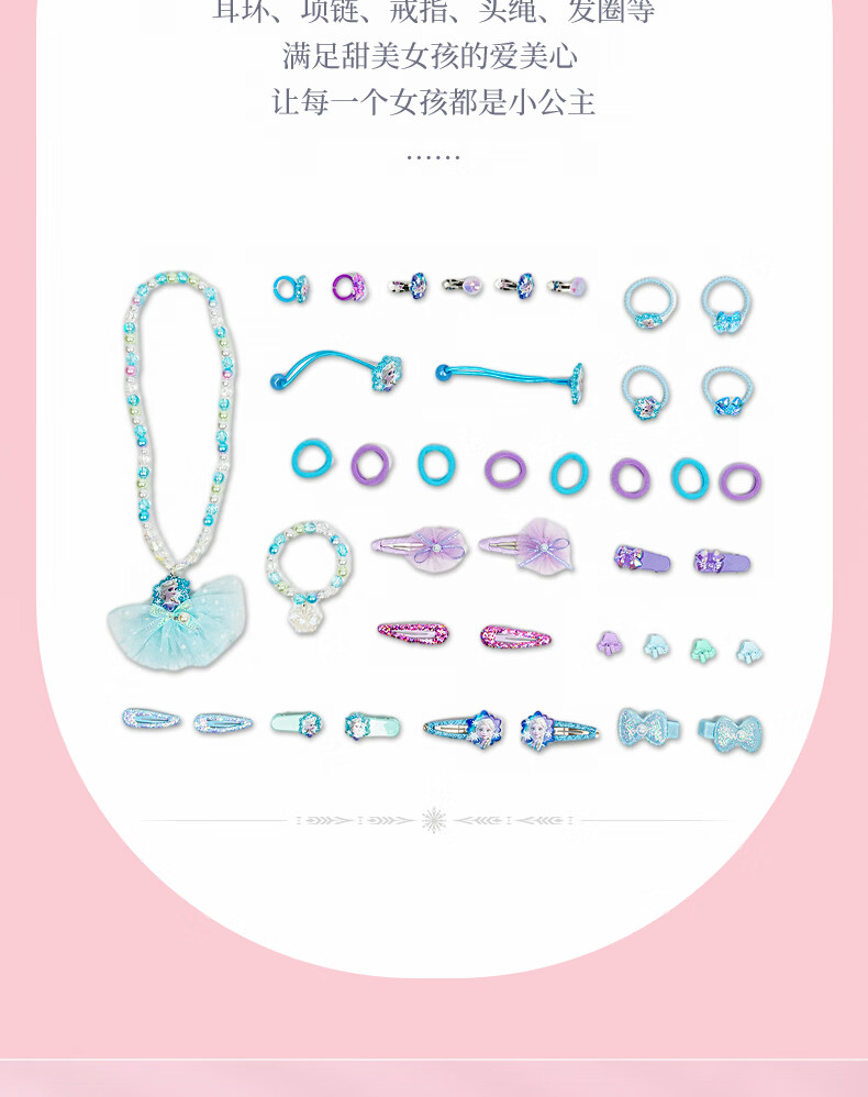 迪士尼(Disney)儿童玩具首饰套装珠链手提礼盒女孩礼物冰雪奇缘发饰串珠项链饰品