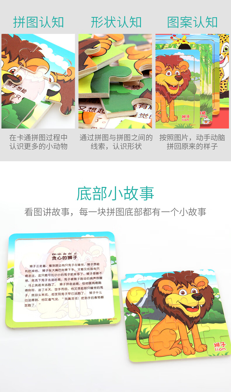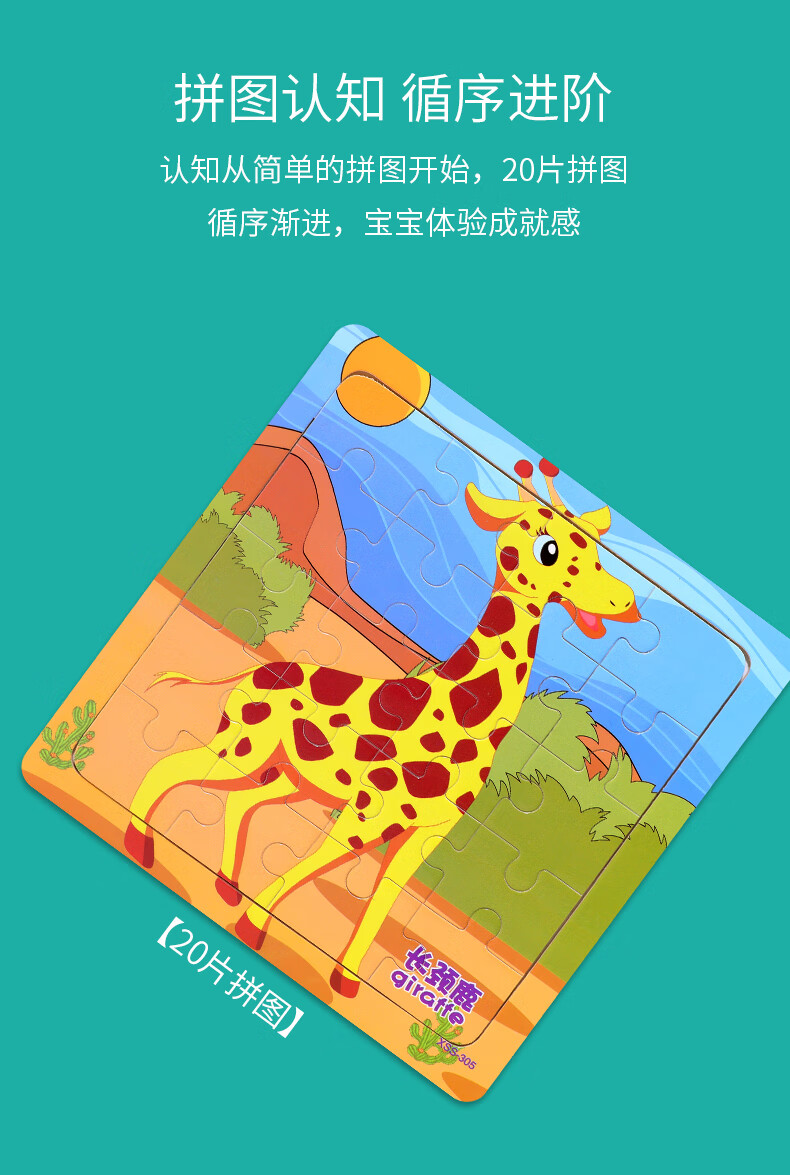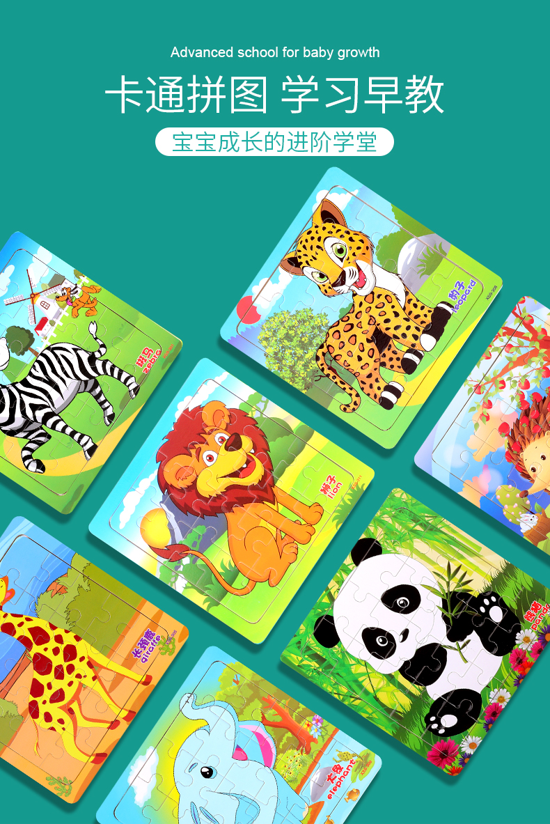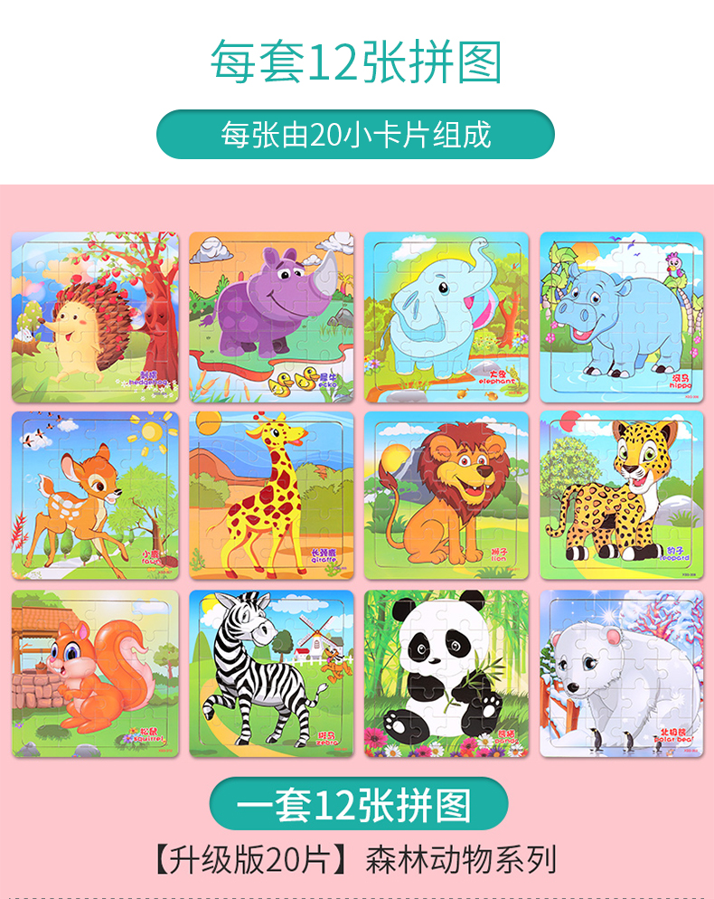 木丸子12张动物拼图幼儿童早教认知拼板3-6岁男女孩玩具生日