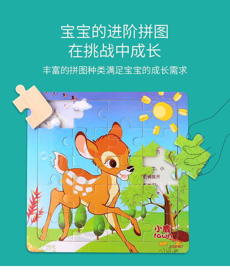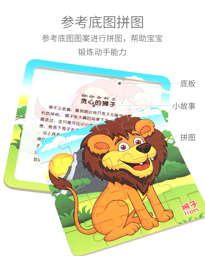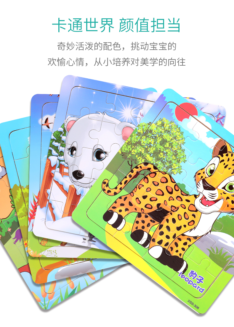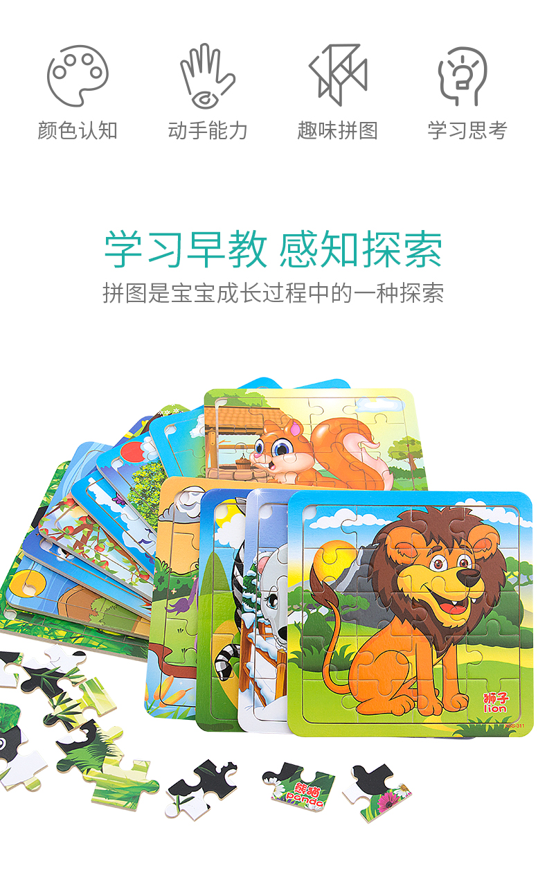 木丸子12张动物拼图幼儿童早教认知拼板3-6岁男女孩玩具生日