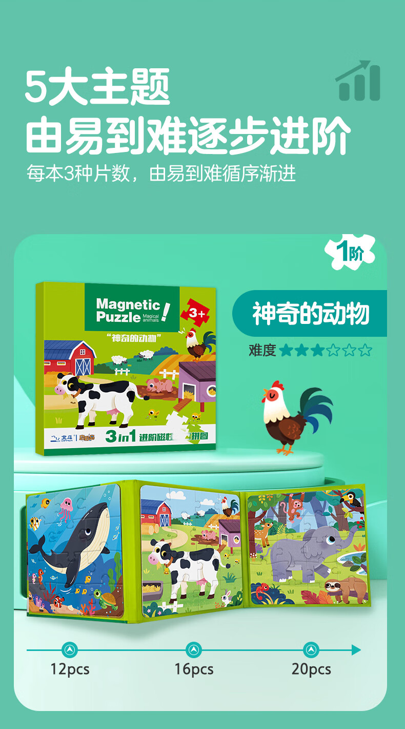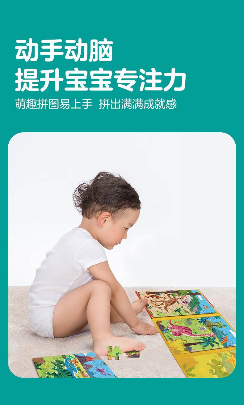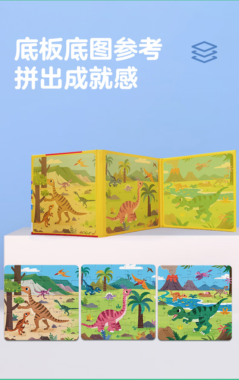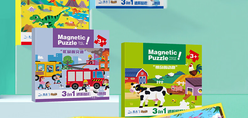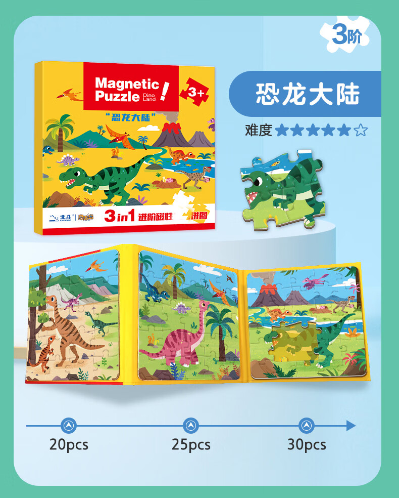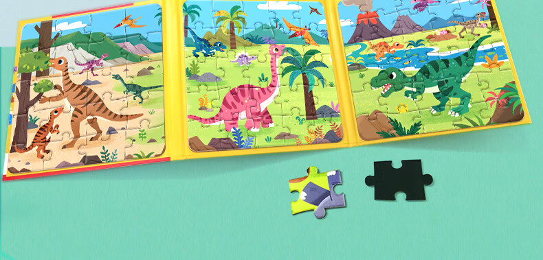 大眼小娃恐龙大陆75片3合1磁性拼图磁力拼板儿童玩具3-6岁