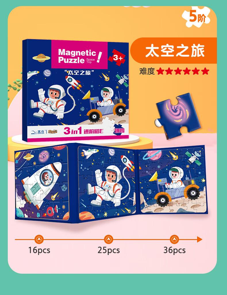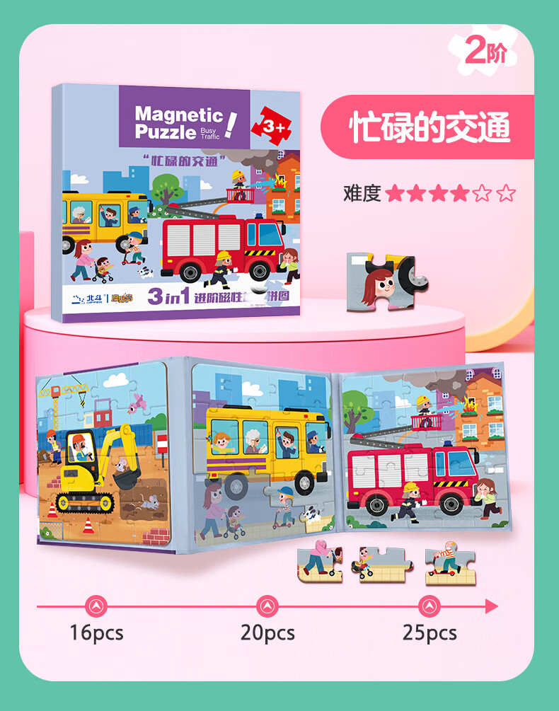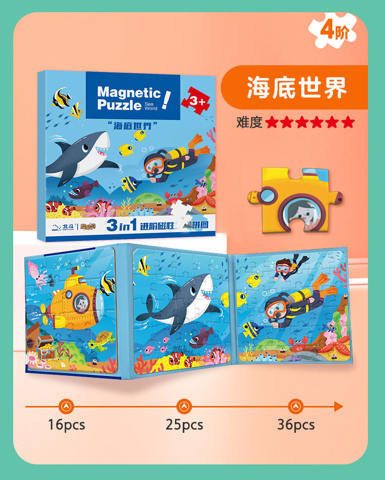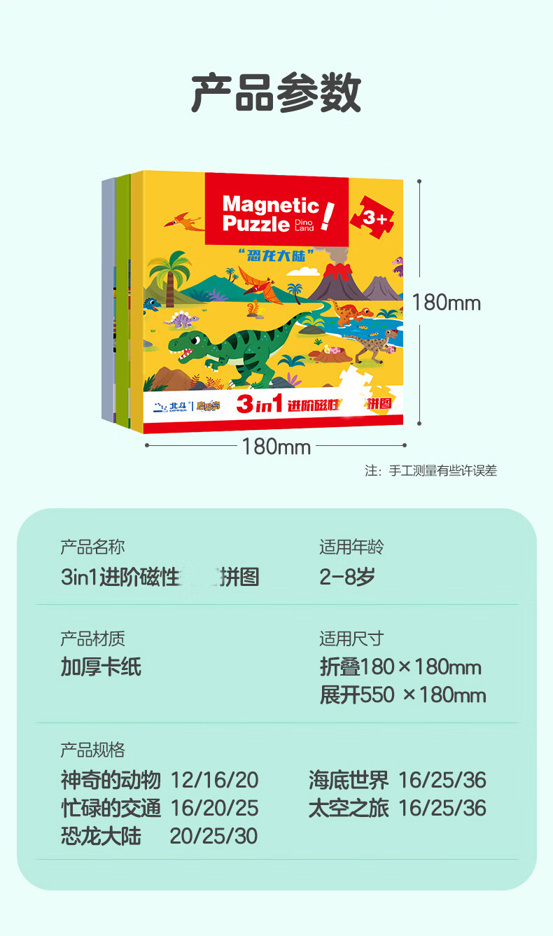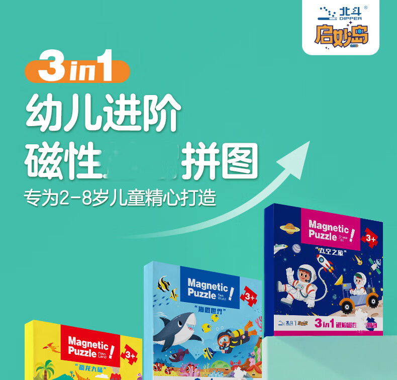 大眼小娃恐龙大陆75片3合1磁性拼图磁力拼板儿童玩具3-6岁