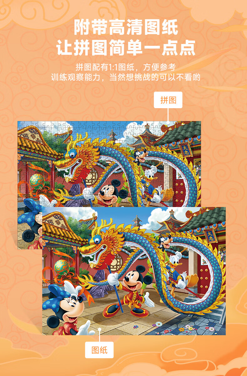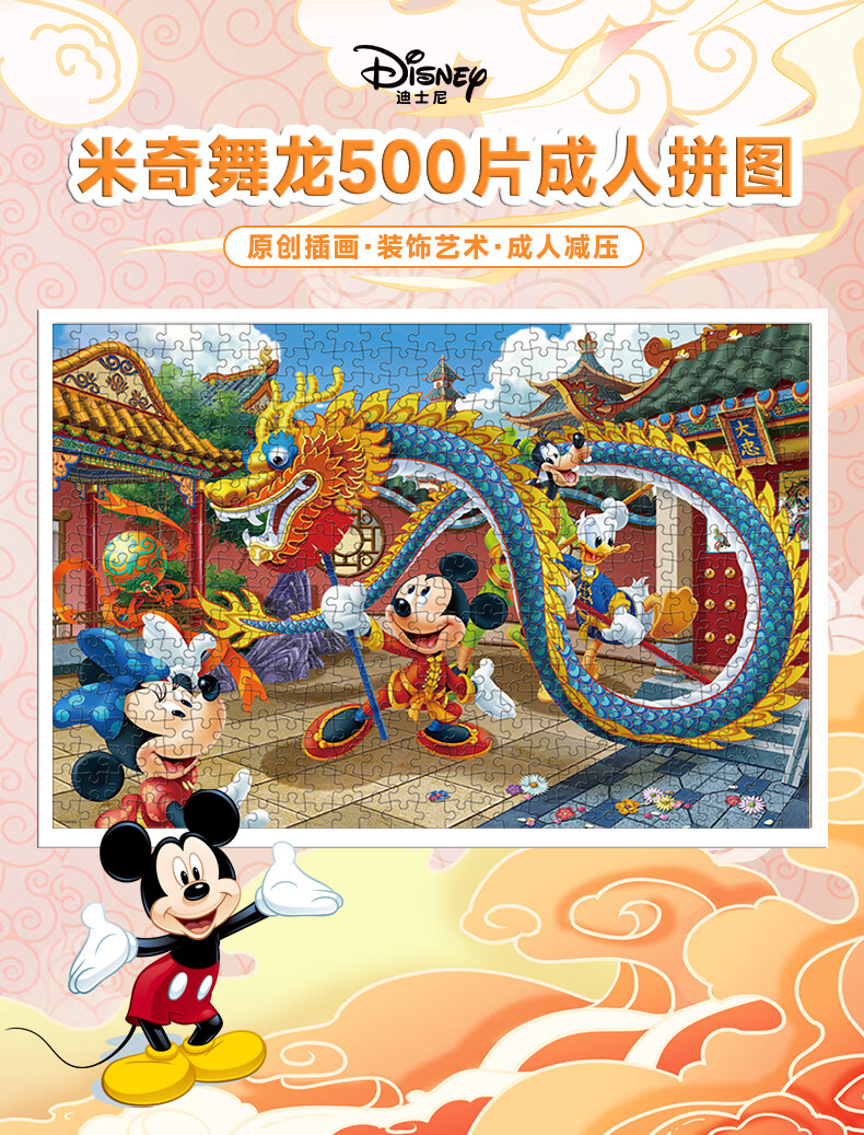 迪士尼(Disney)成人拼图500片米奇舞龙减压高难度玩具