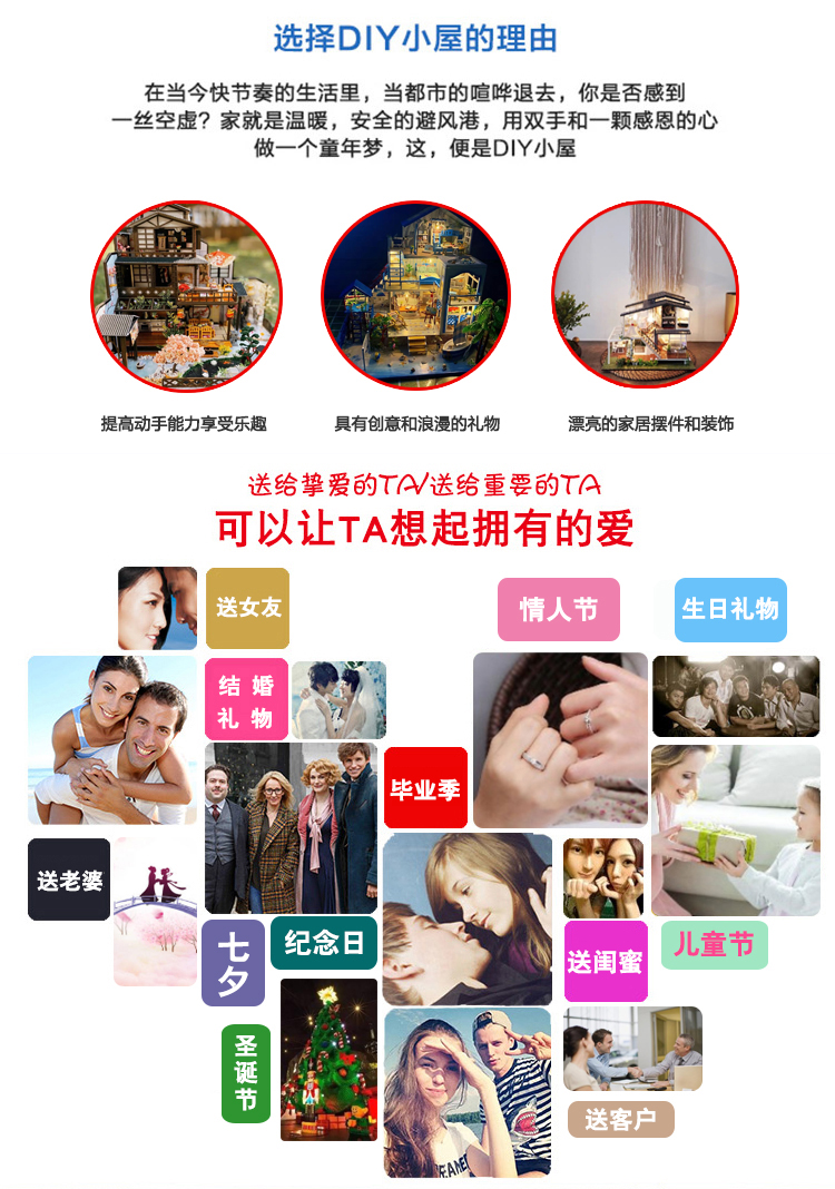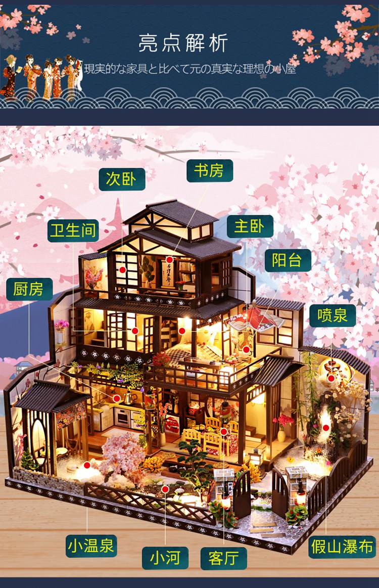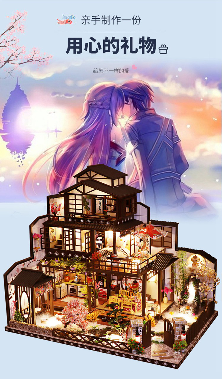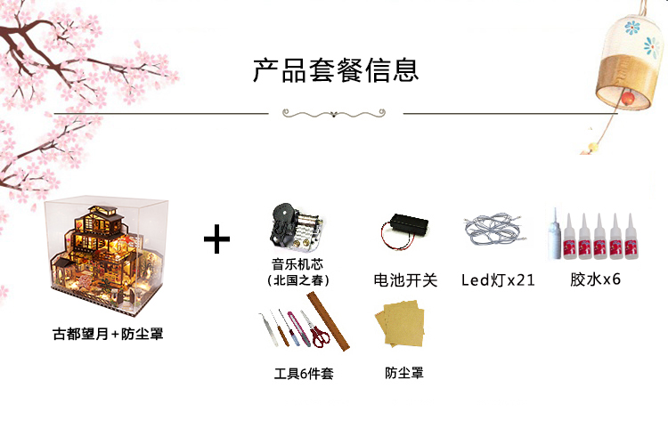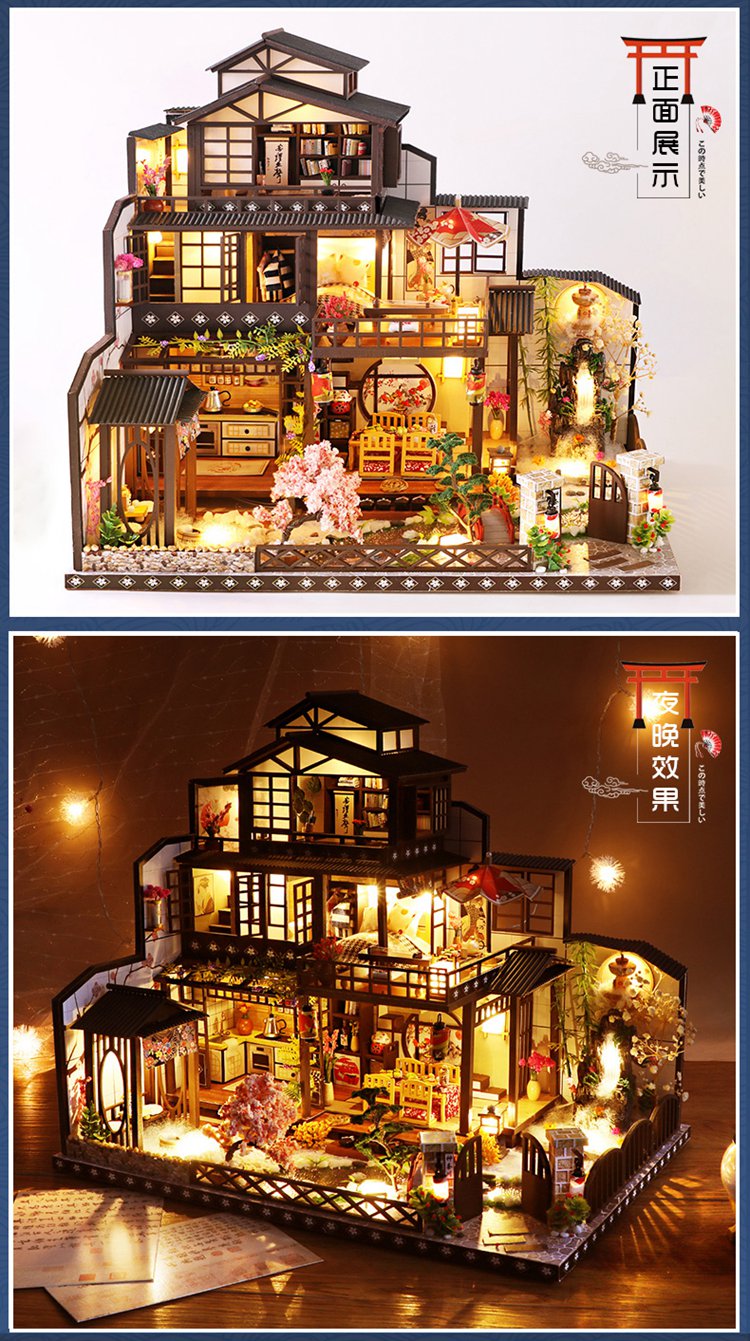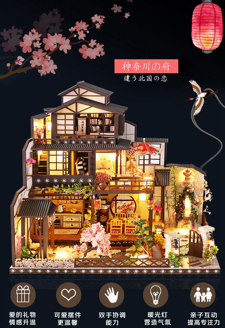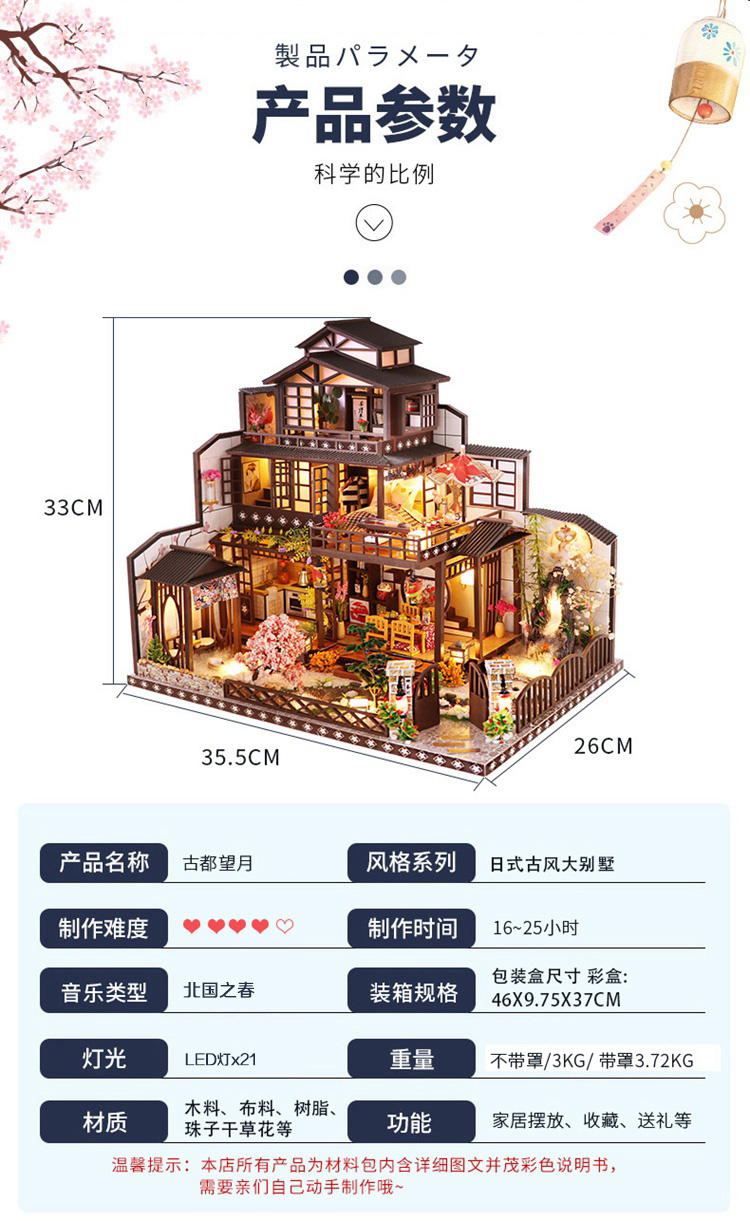 我の屋日式DIY小屋古都望月手工制作房子别墅拼图八音盒玩具生
