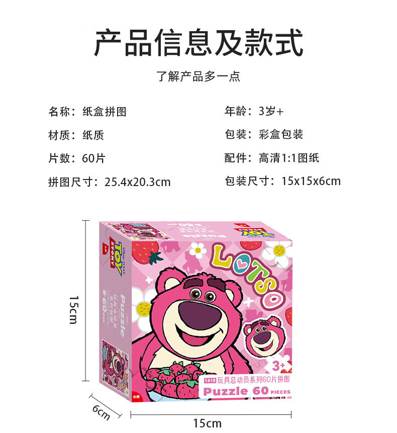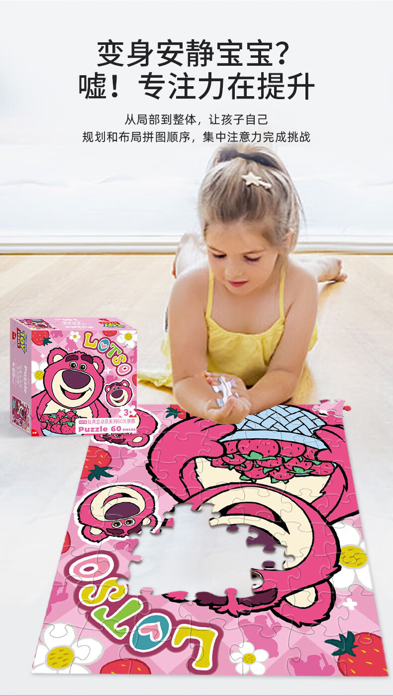 迪士尼60片儿童拼图玩具草莓熊拼图(古部盒装拼图)11DF0
