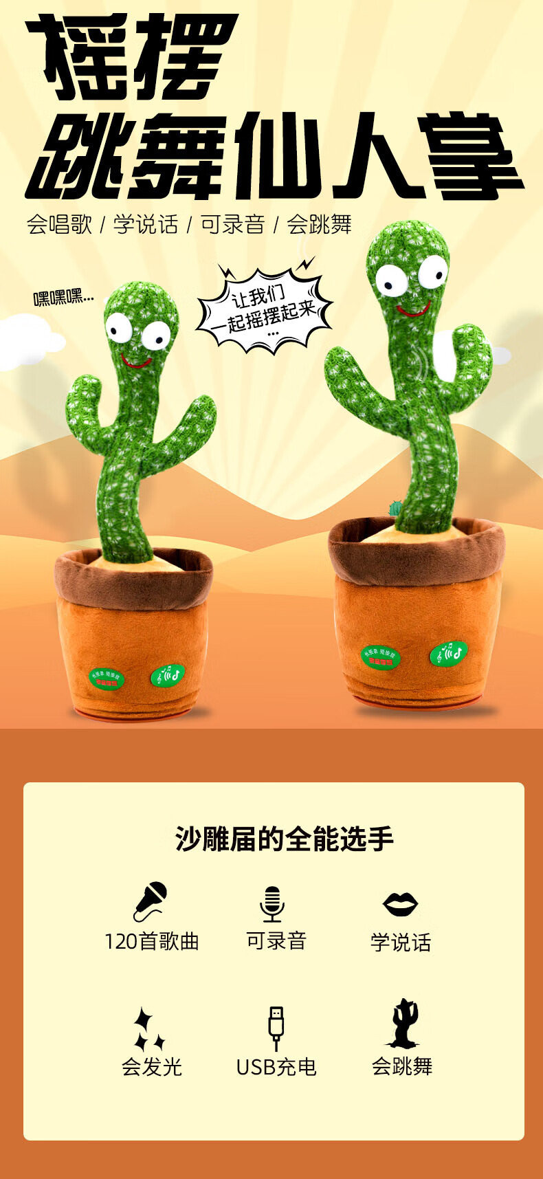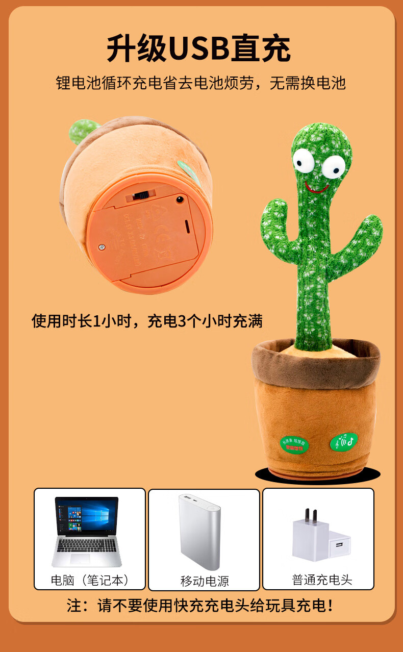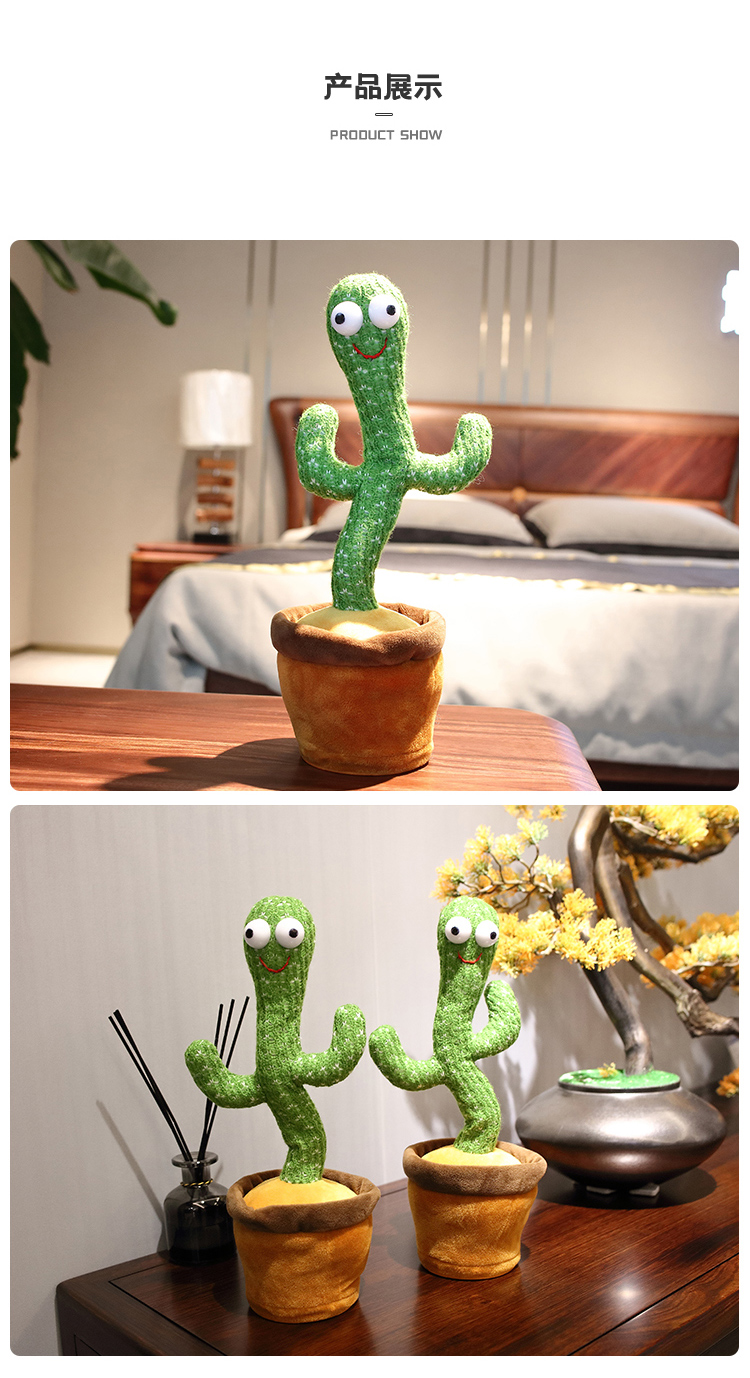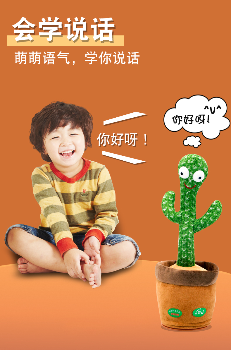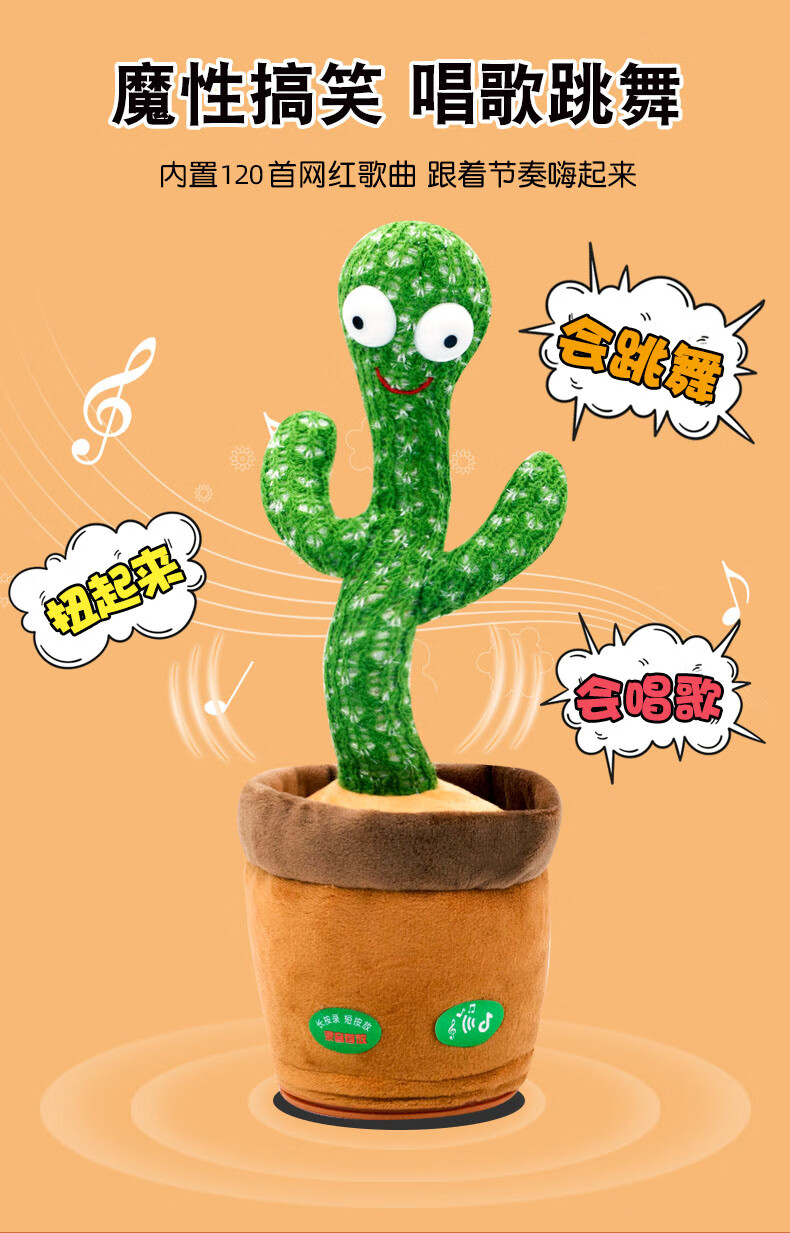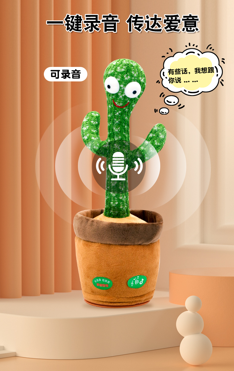 沃知跳舞仙人掌玩具会唱歌录音学说话婴儿玩具女孩男孩毛绒玩偶公