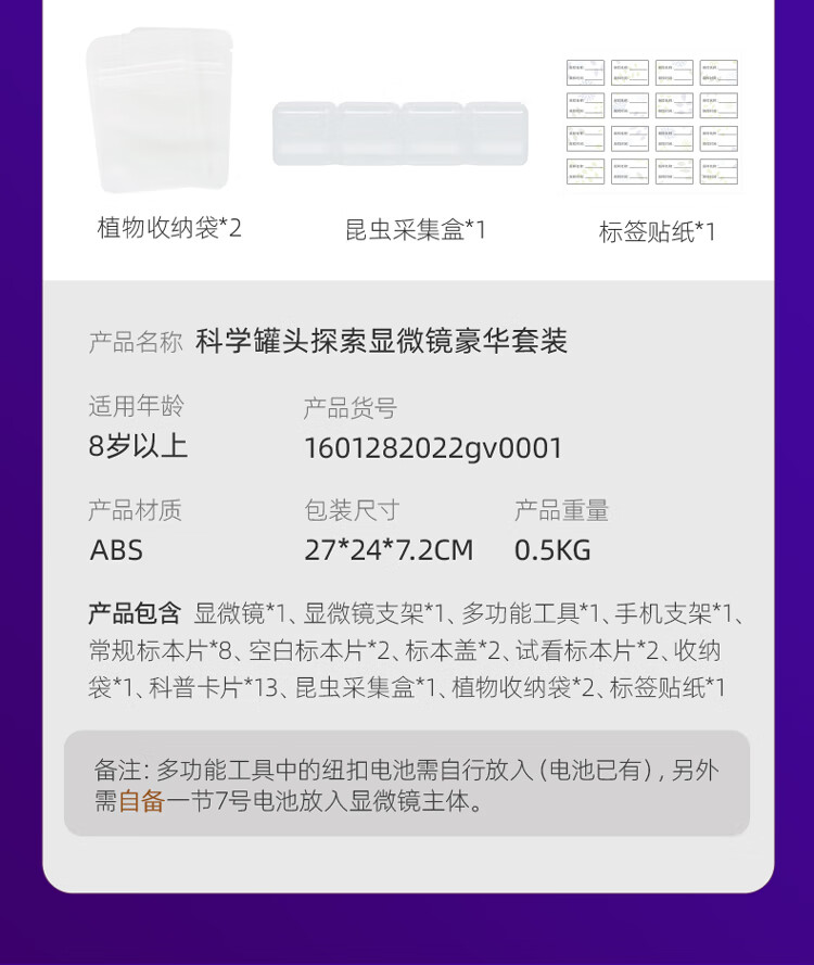 科学罐头(Sciencecan)显微镜儿童玩具学生便携式男女