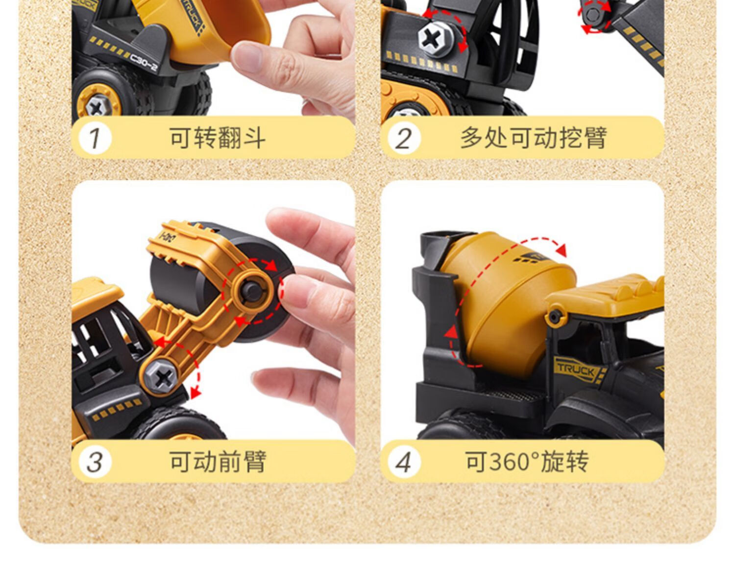 梦多福2岁男孩玩具圣诞节礼物儿童拆装工程车拧螺丝生日礼物挖掘