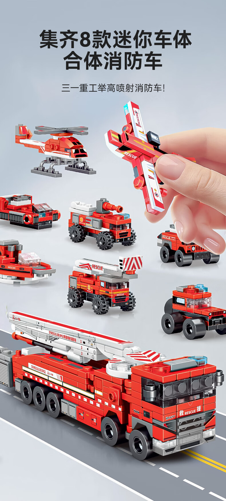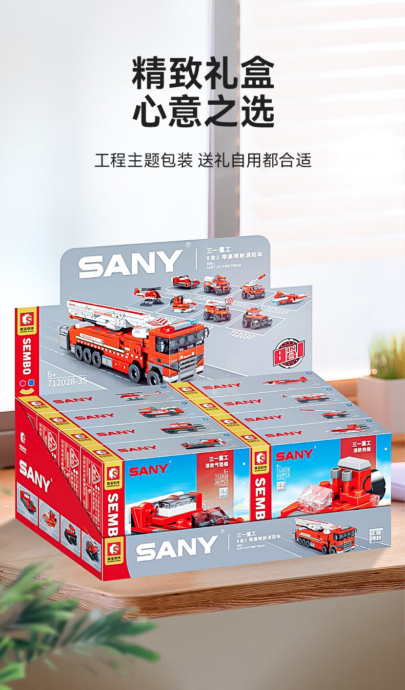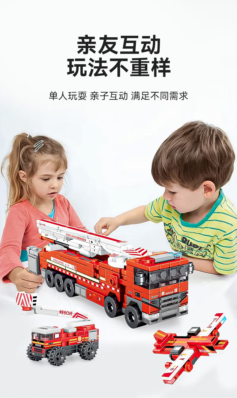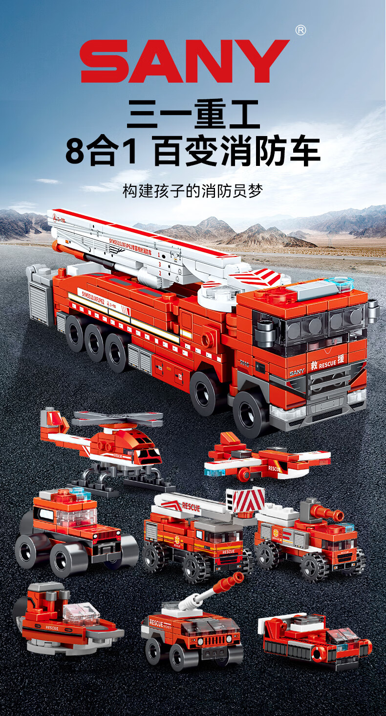 森宝积木儿童拼装积木男孩玩具三一重工系列八合一消防车7120