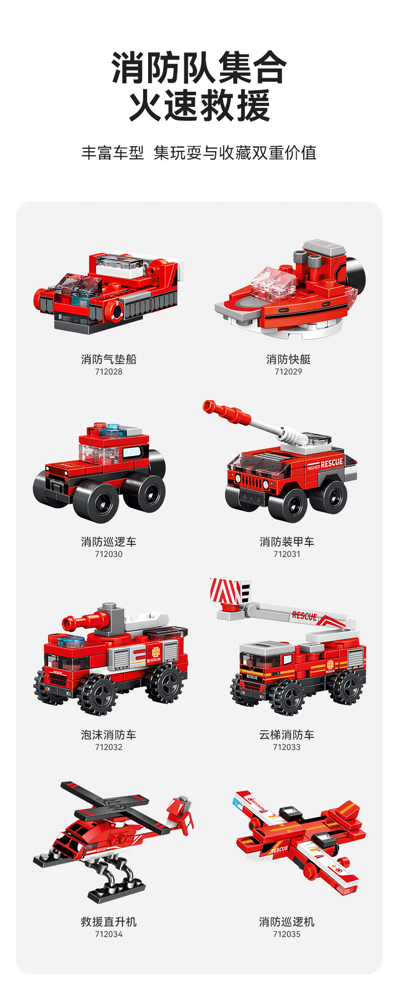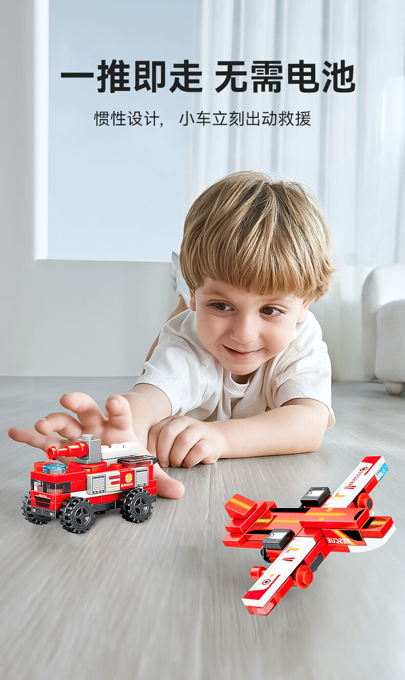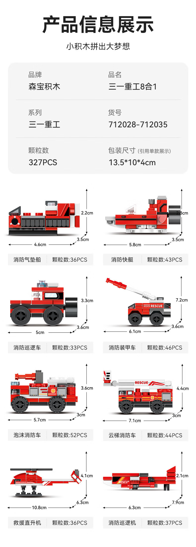 森宝积木儿童拼装积木男孩玩具三一重工系列八合一消防车7120