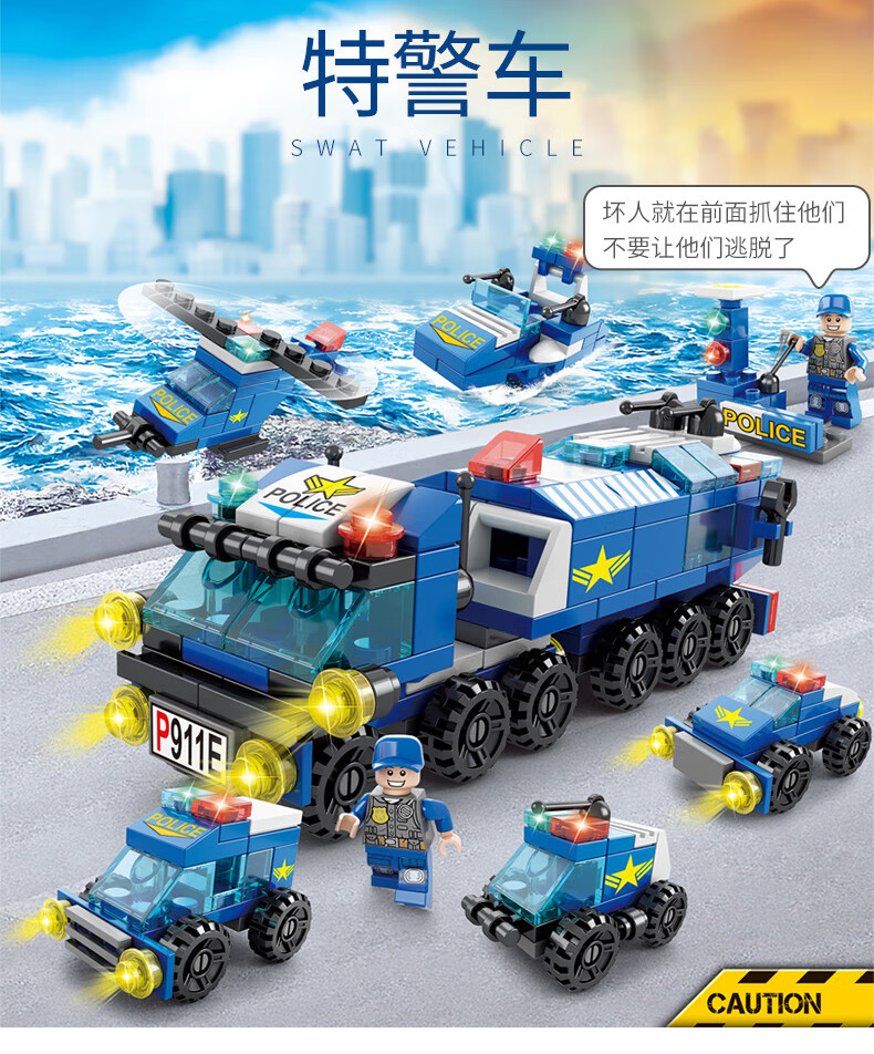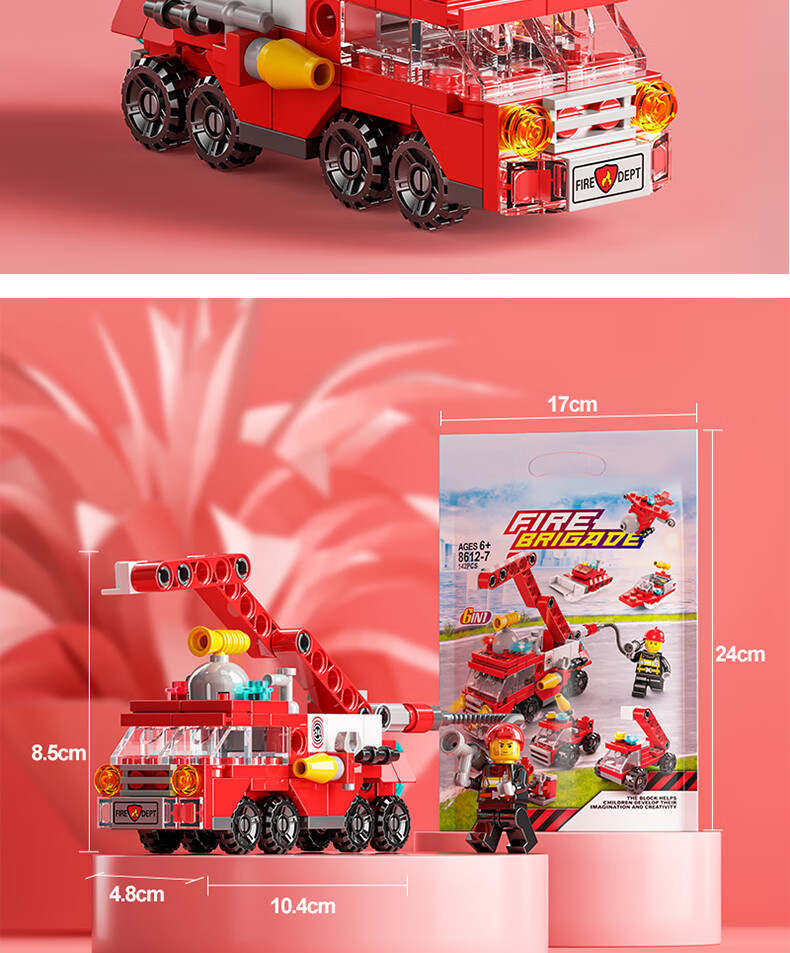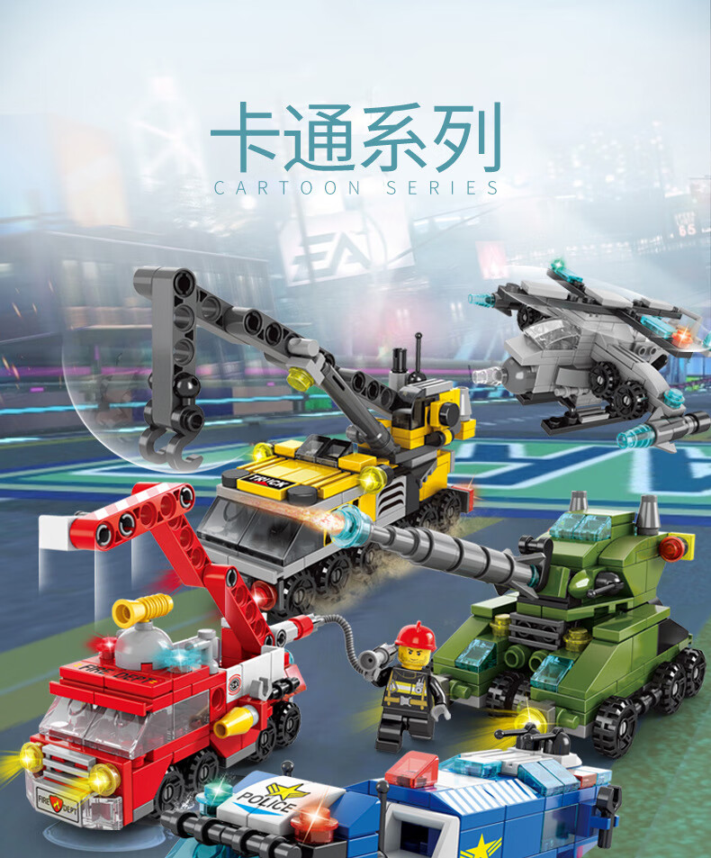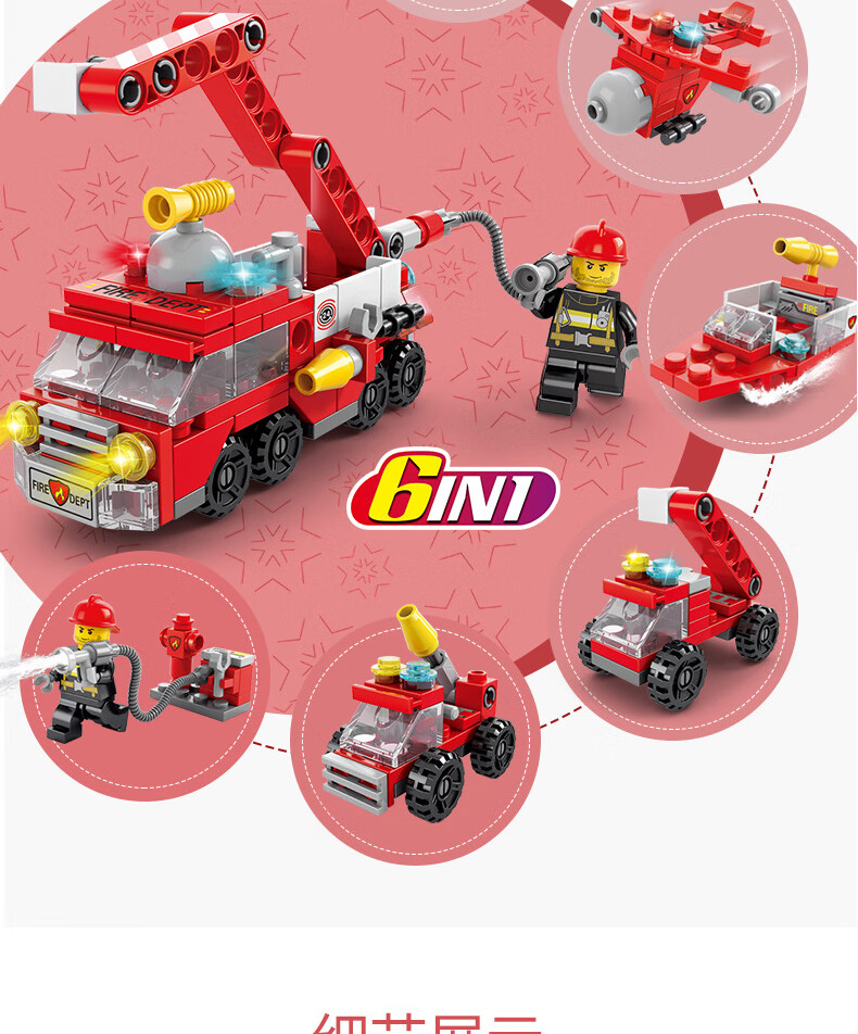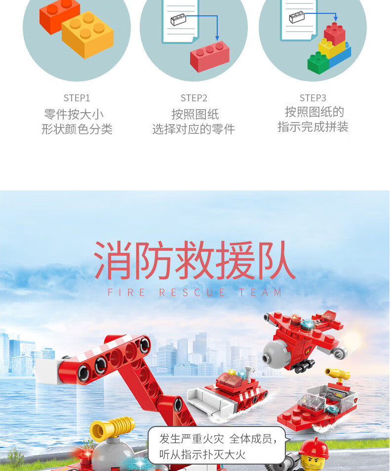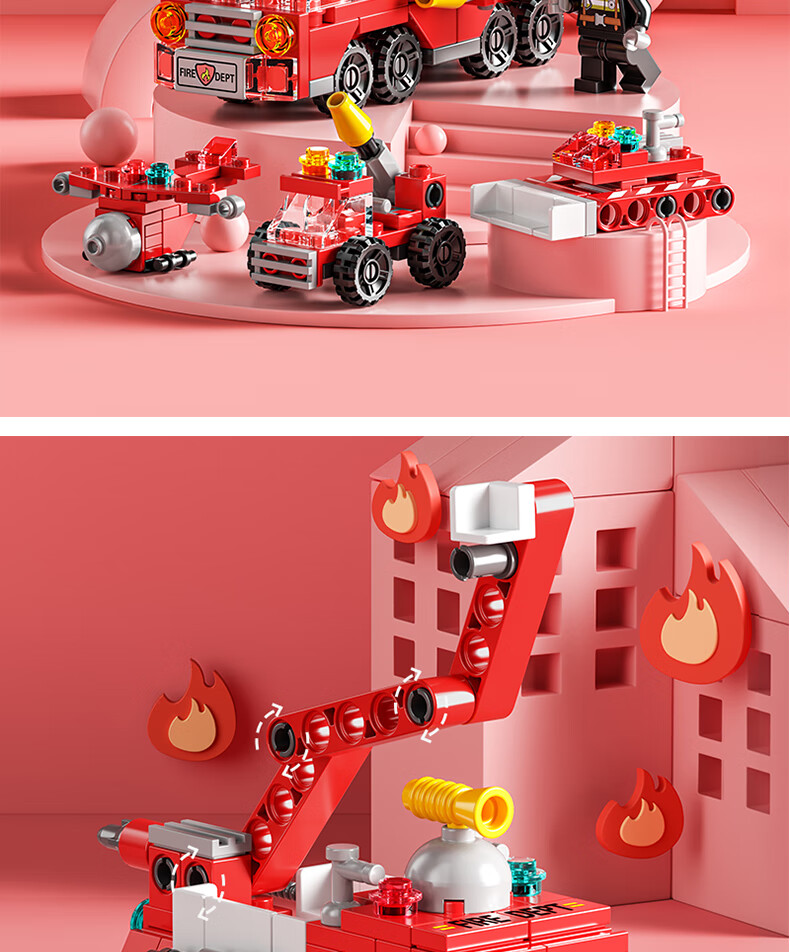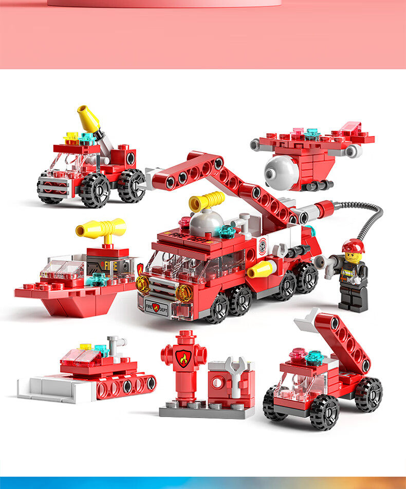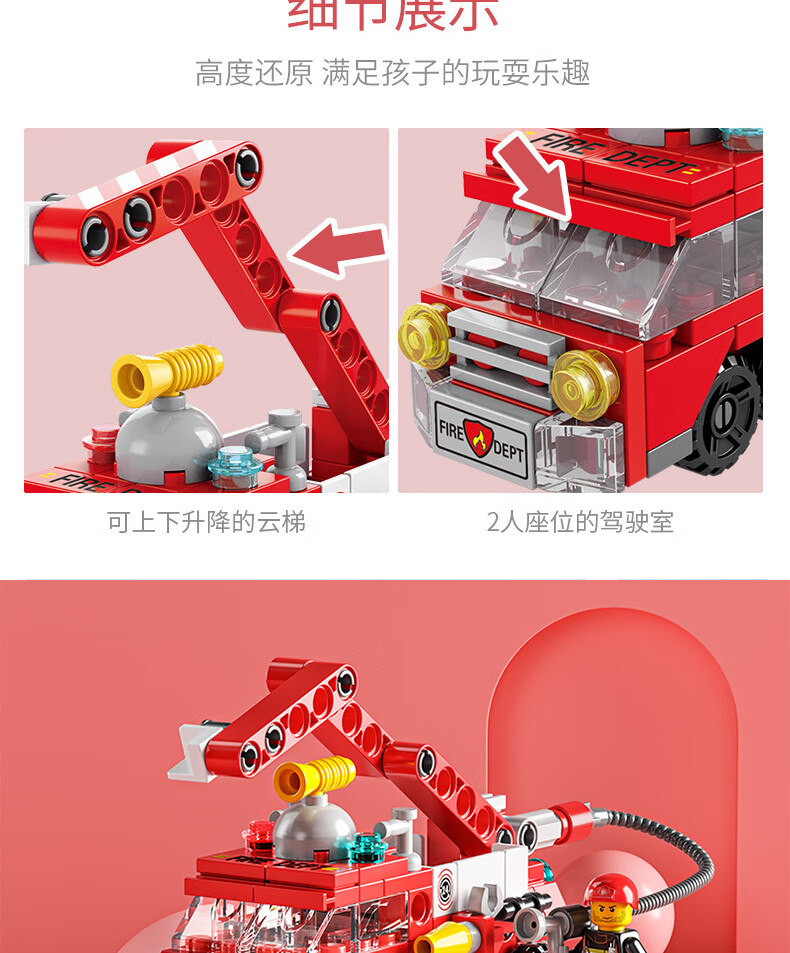 尚韵积木拼装儿童玩具男孩小颗粒消防车积木玩具女孩模型立体拼插