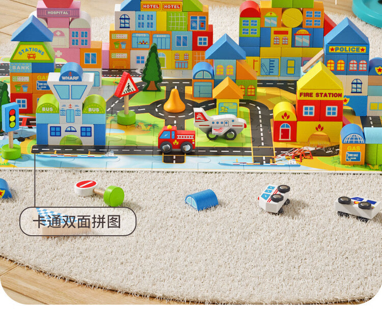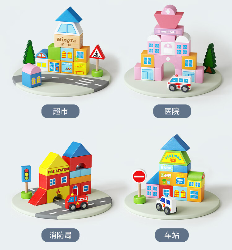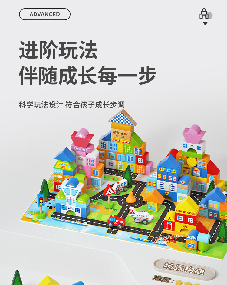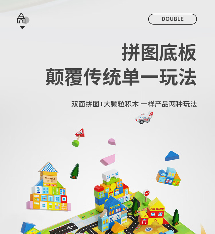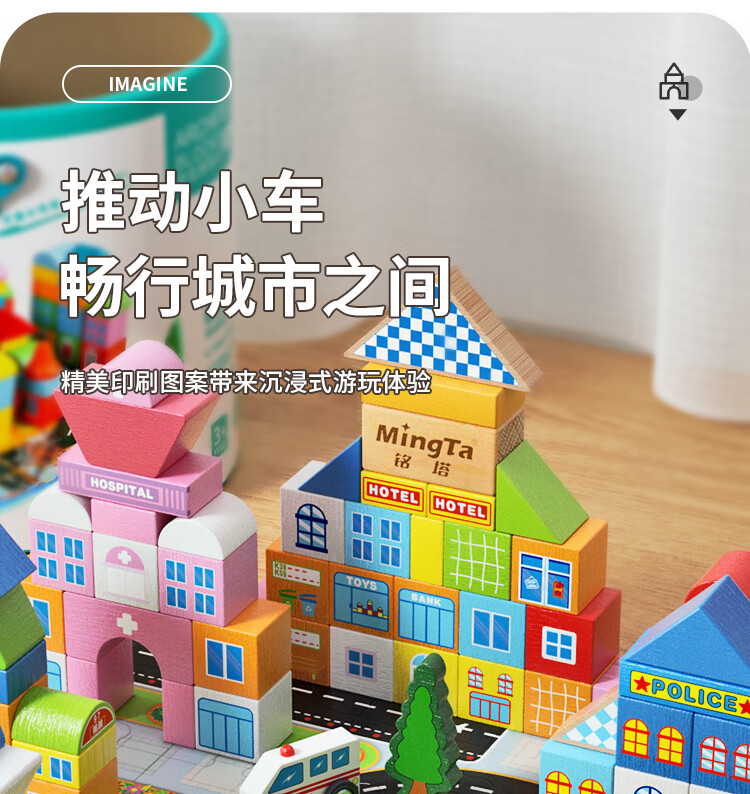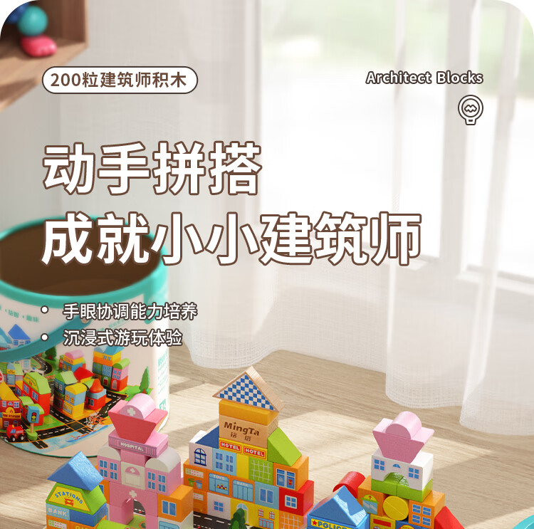 铭塔200粒建筑师积木儿童玩具木头木制质拼装拼图男孩女孩大颗