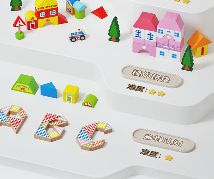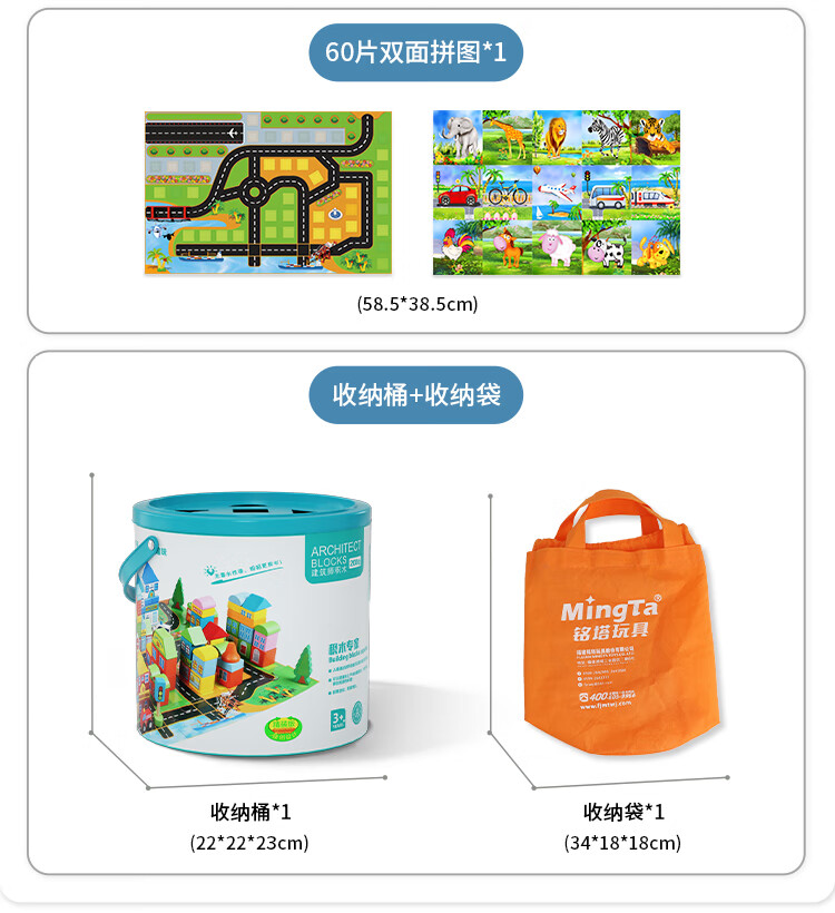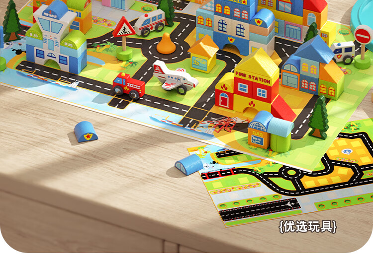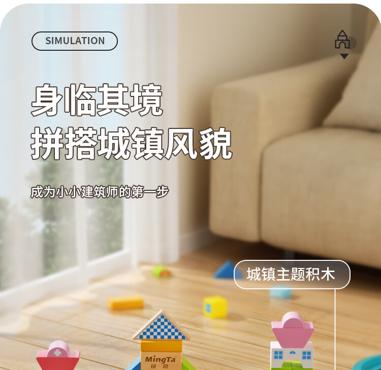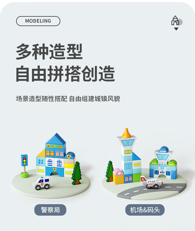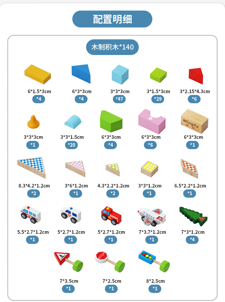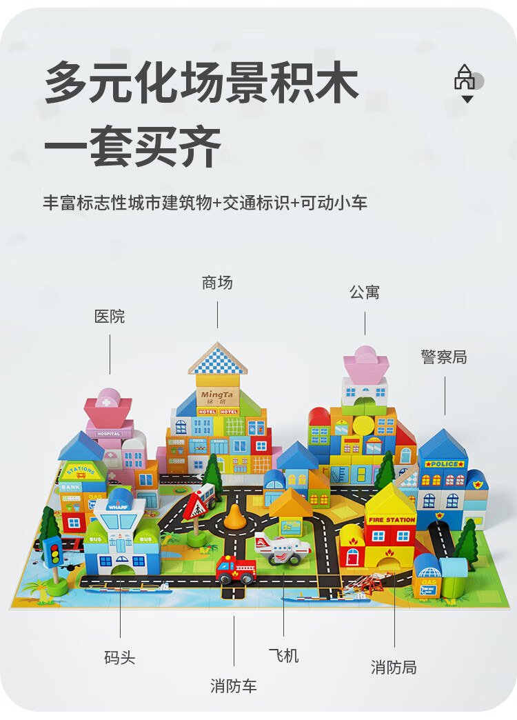 铭塔200粒建筑师积木儿童玩具木头木制质拼装拼图男孩女孩大颗