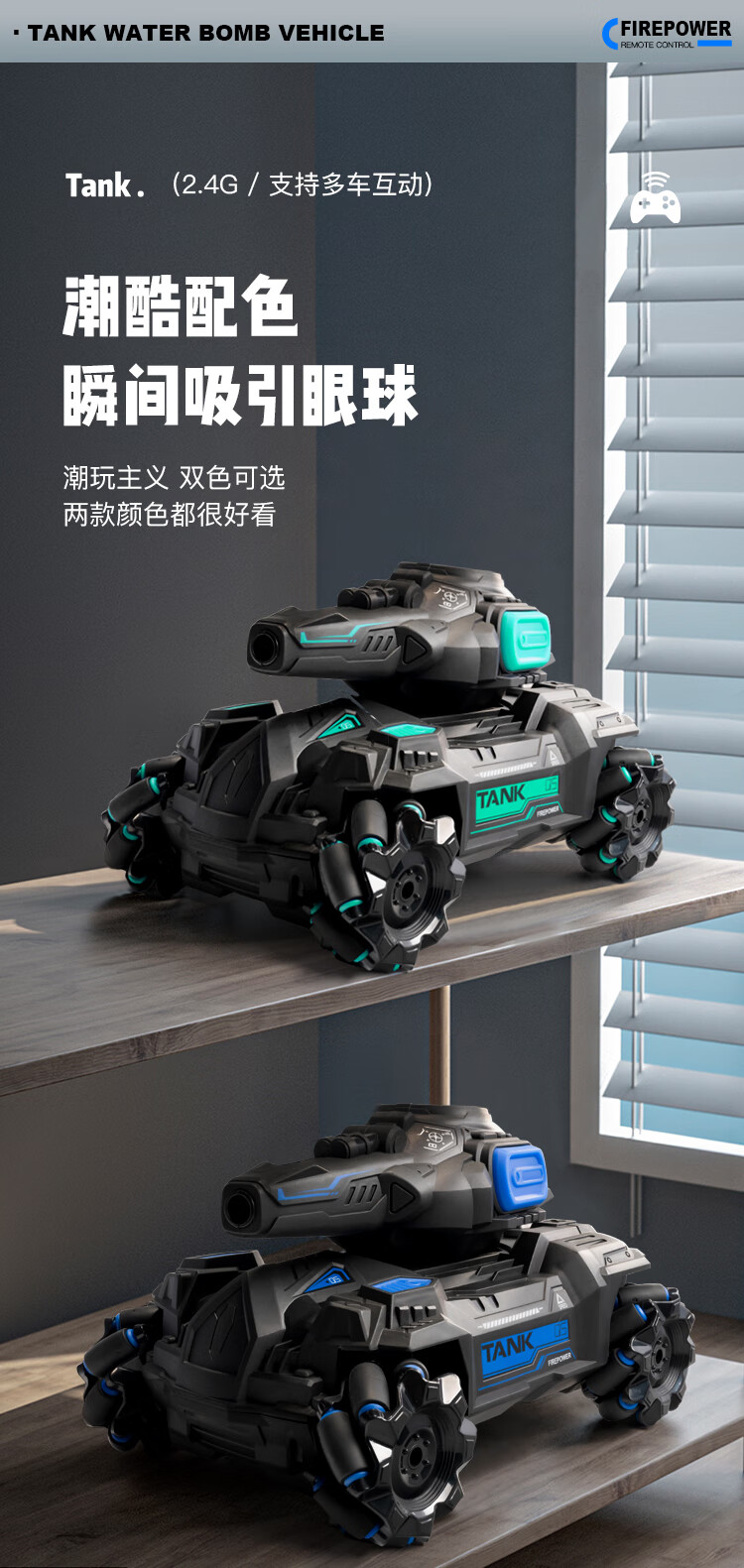 索迪儿童玩具男孩遥控汽车手势感应坦克特技车越野四驱生日礼物