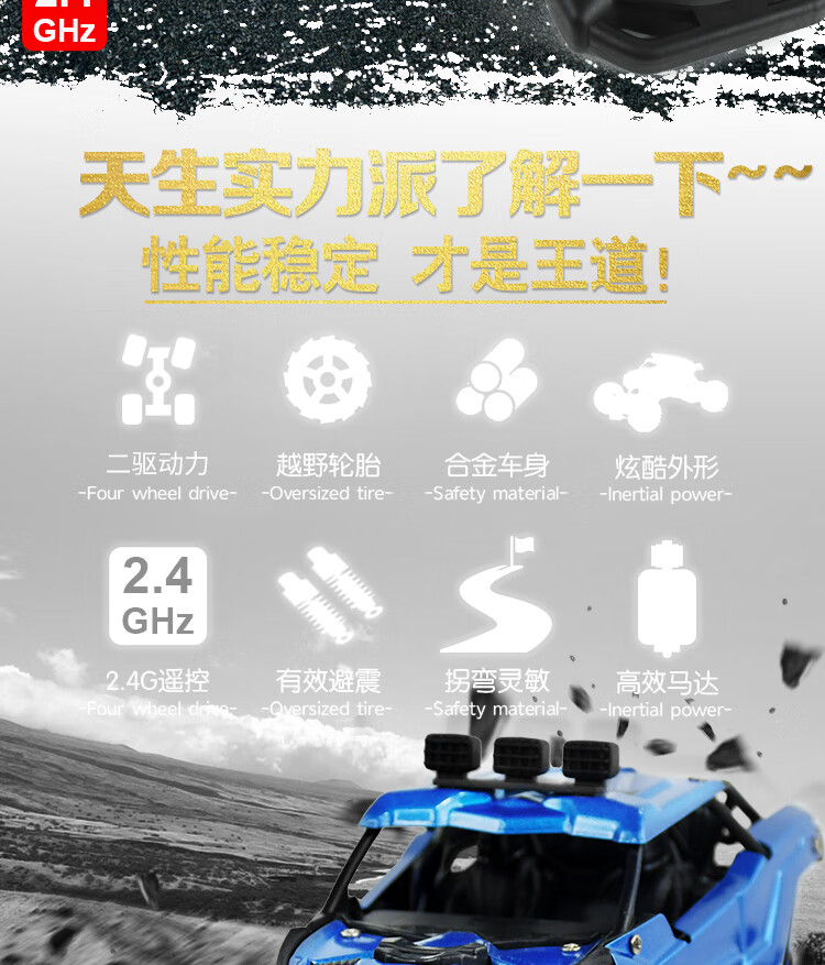 冠巢儿童玩具遥控汽车灯光耐摔电动越野车3-5-6岁女孩男孩生