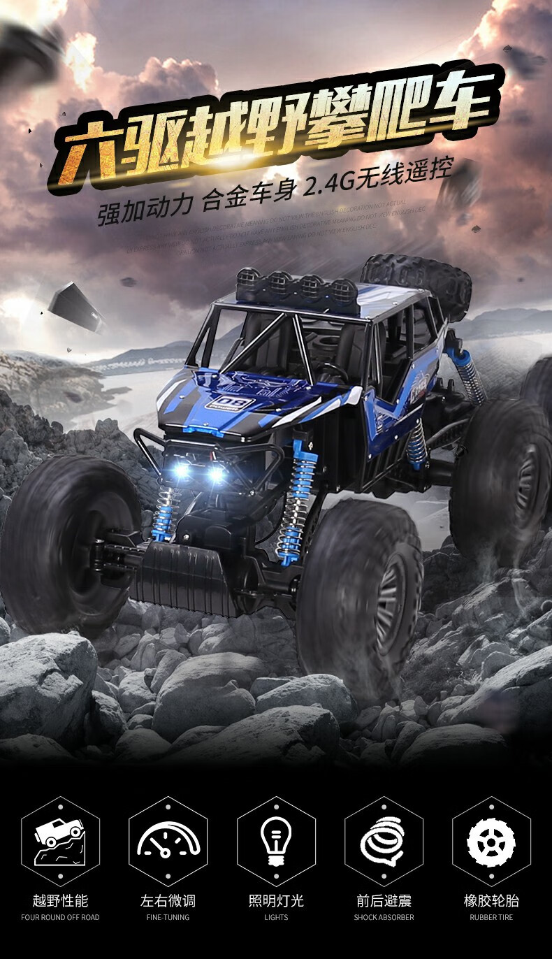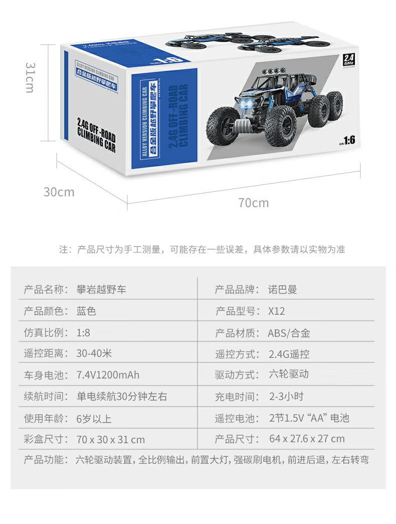 诺巴曼合金版64CM越野车六驱遥控车儿童玩具车男孩遥控汽车赛