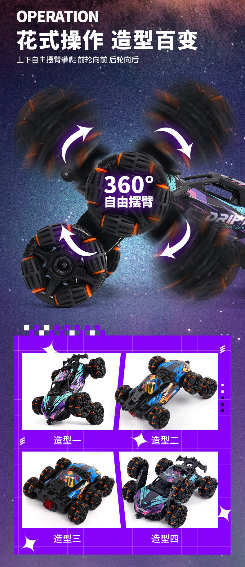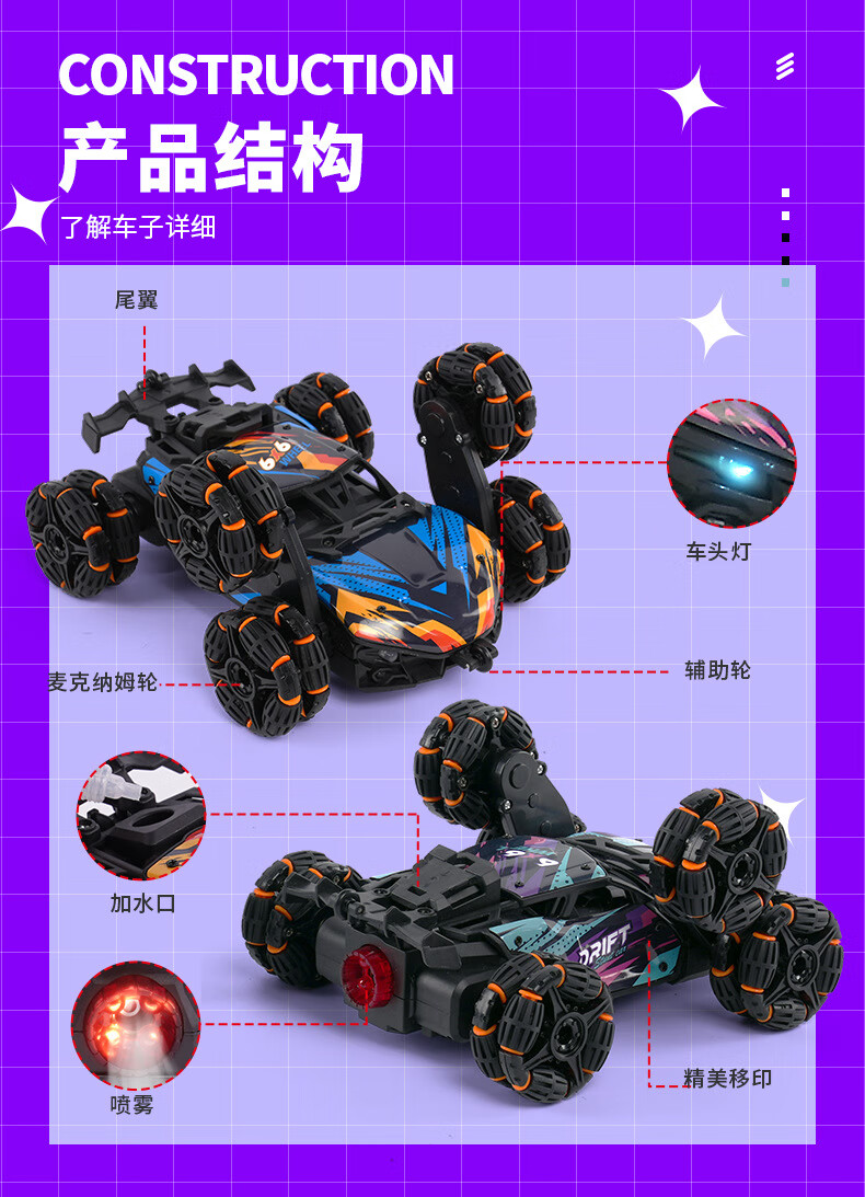 尚韵玩具车遥控特技翻斗车六驱漂移越野赛车遥控汽车3-6岁玩具
