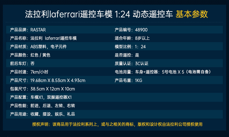 星辉(Rastar)遥控车1:24法拉利LaFerrari跑