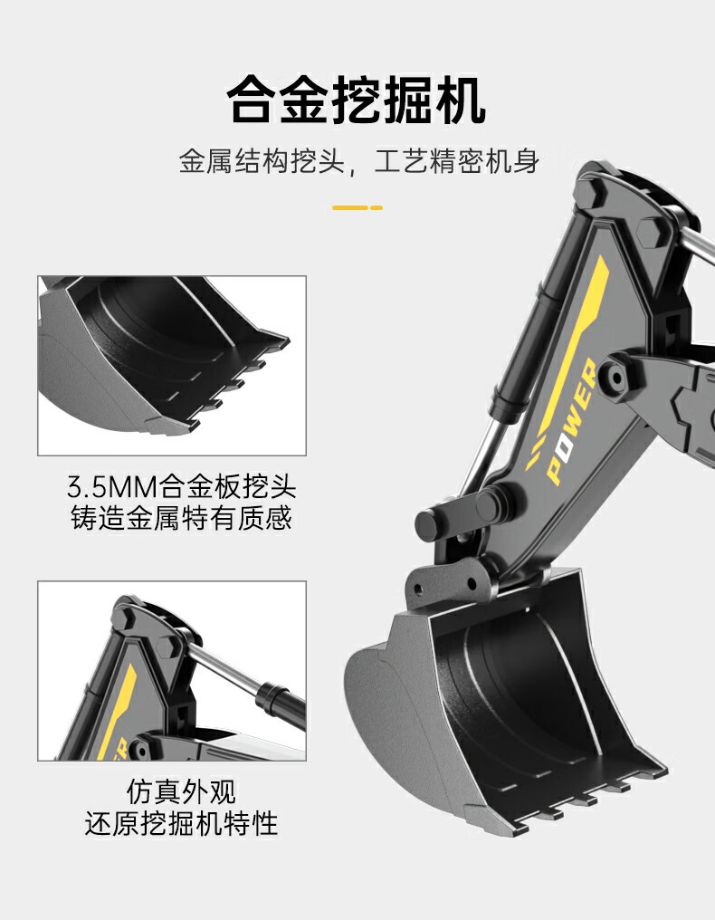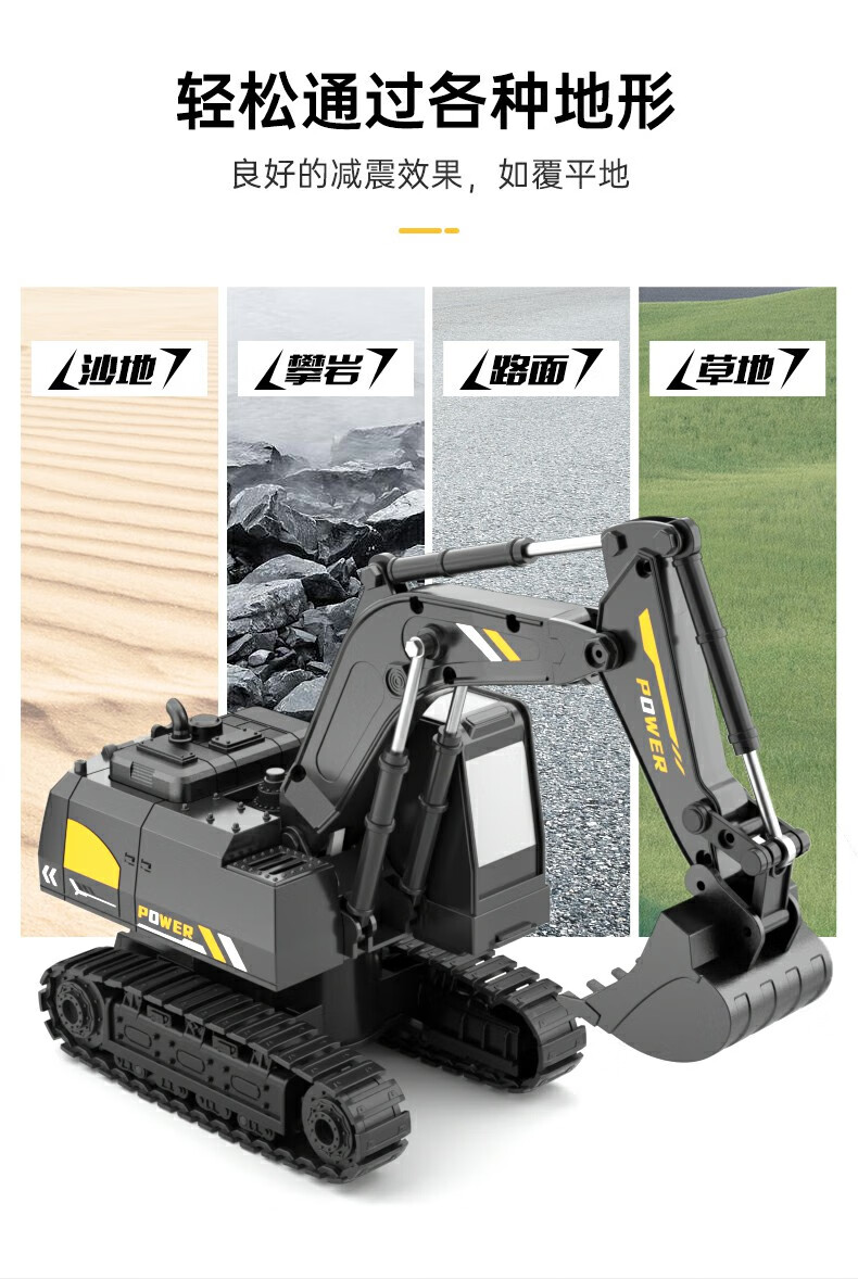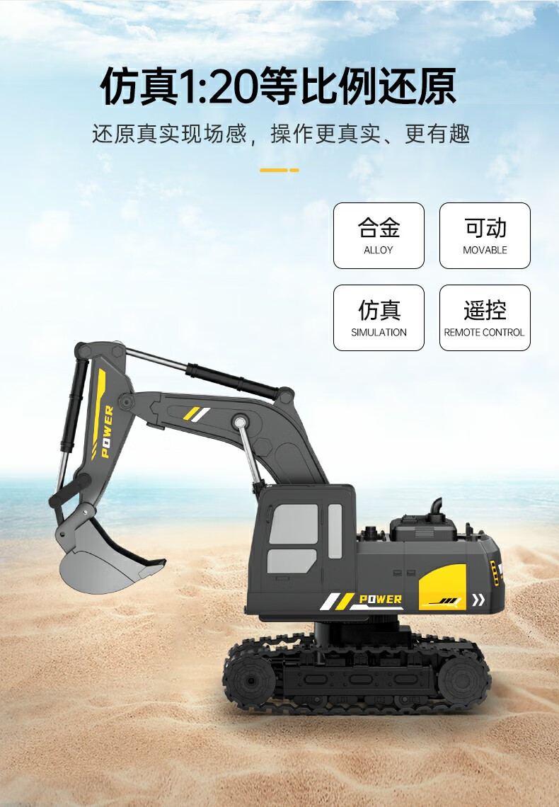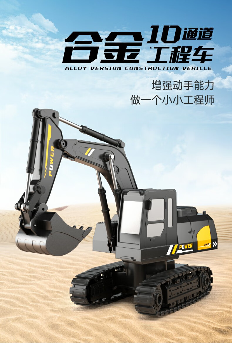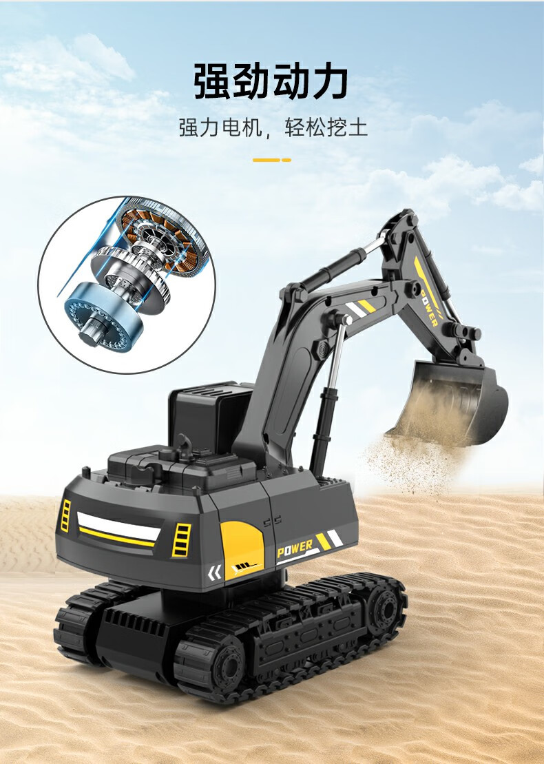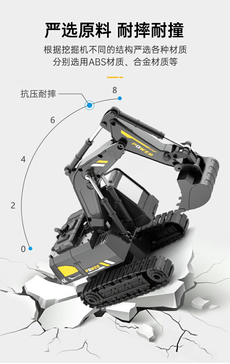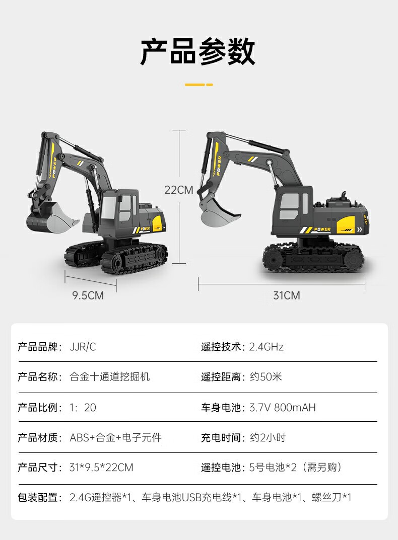 JJR/C儿童玩具遥控车合金挖掘挖土机工程车电动挖机模型男孩