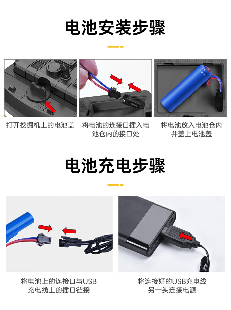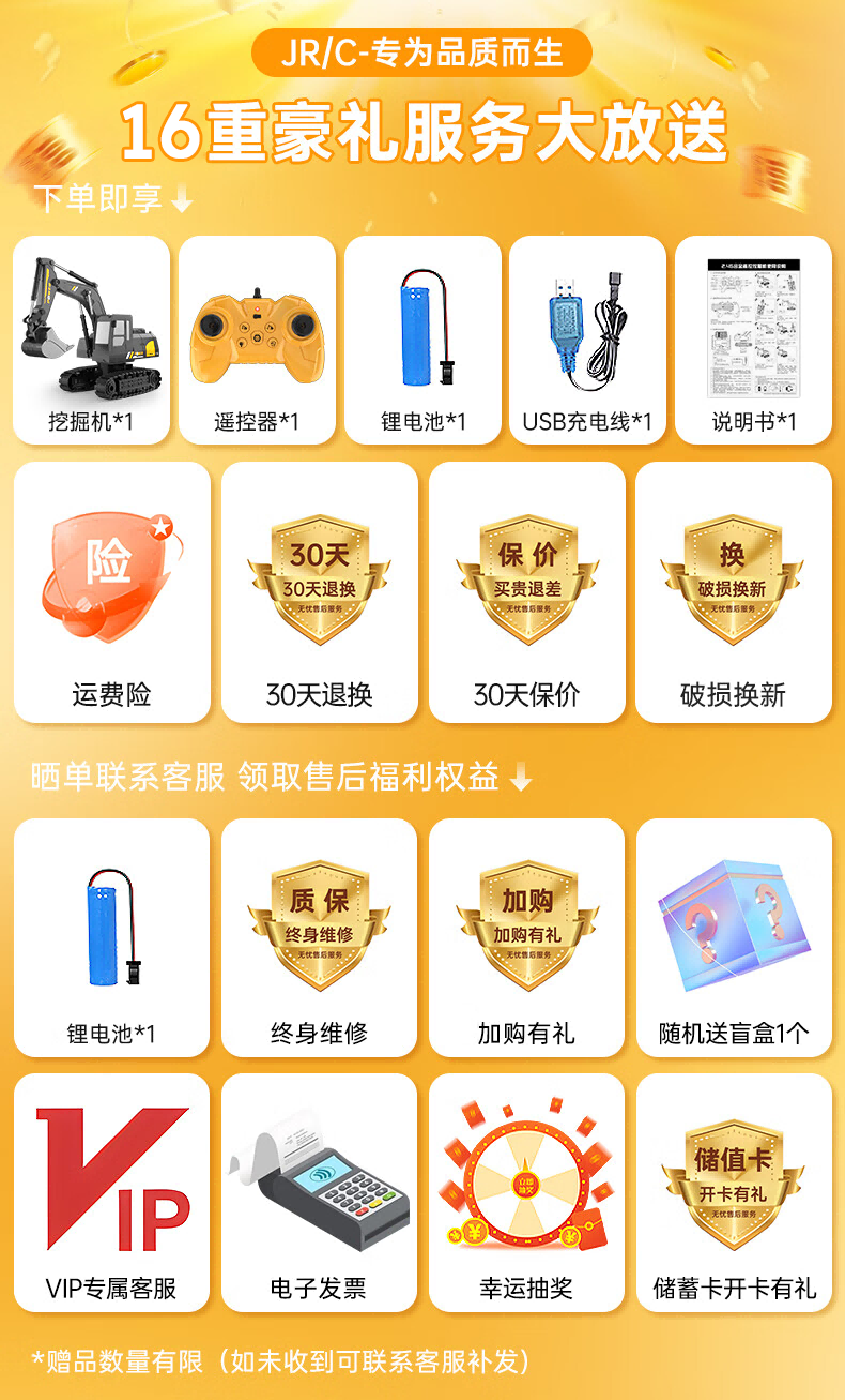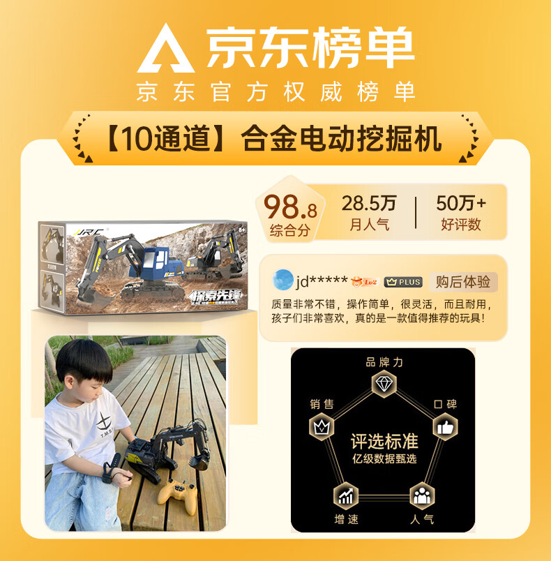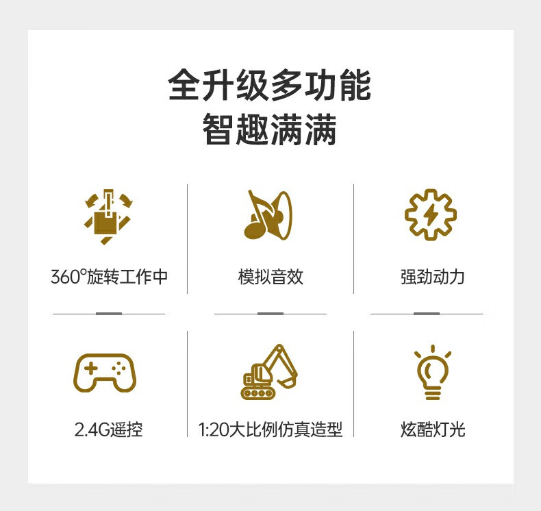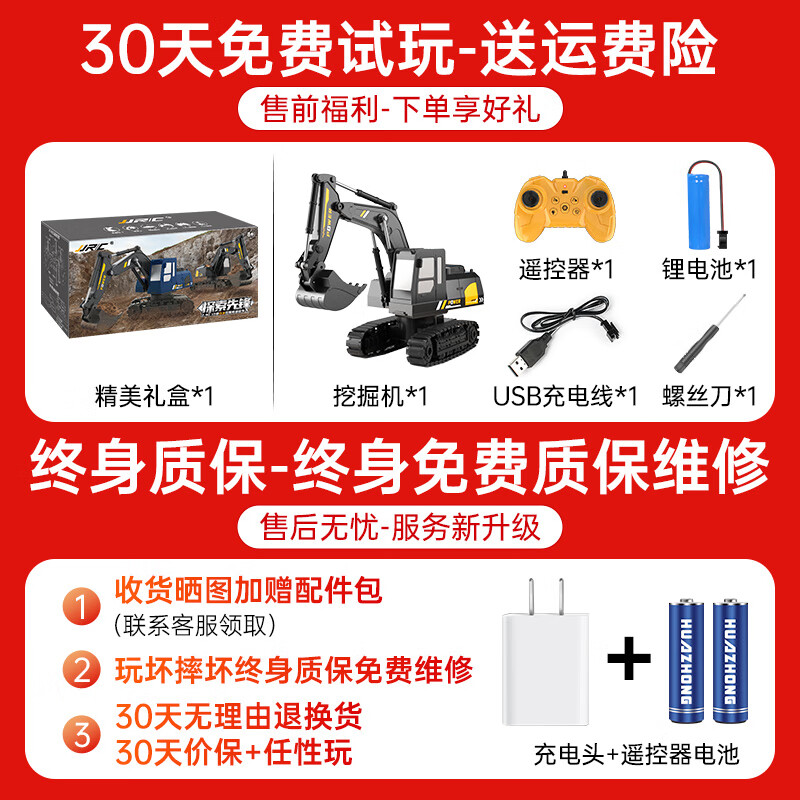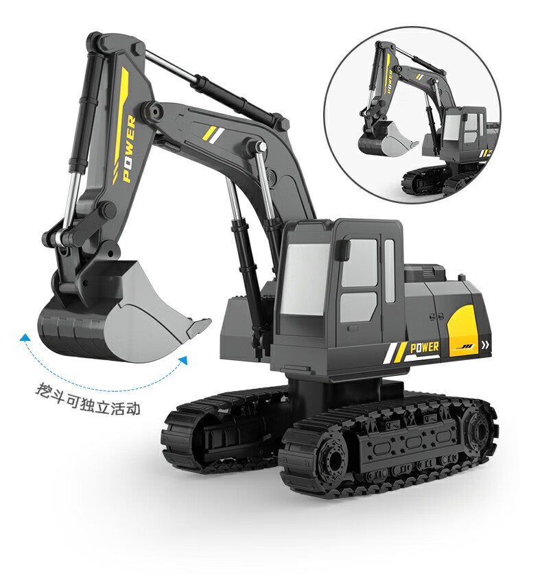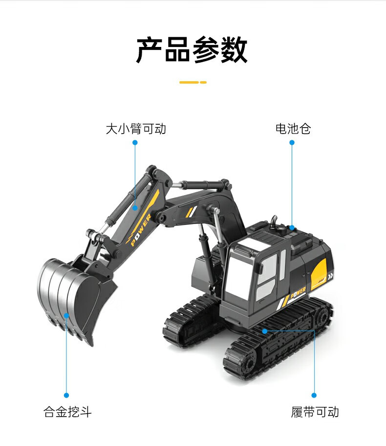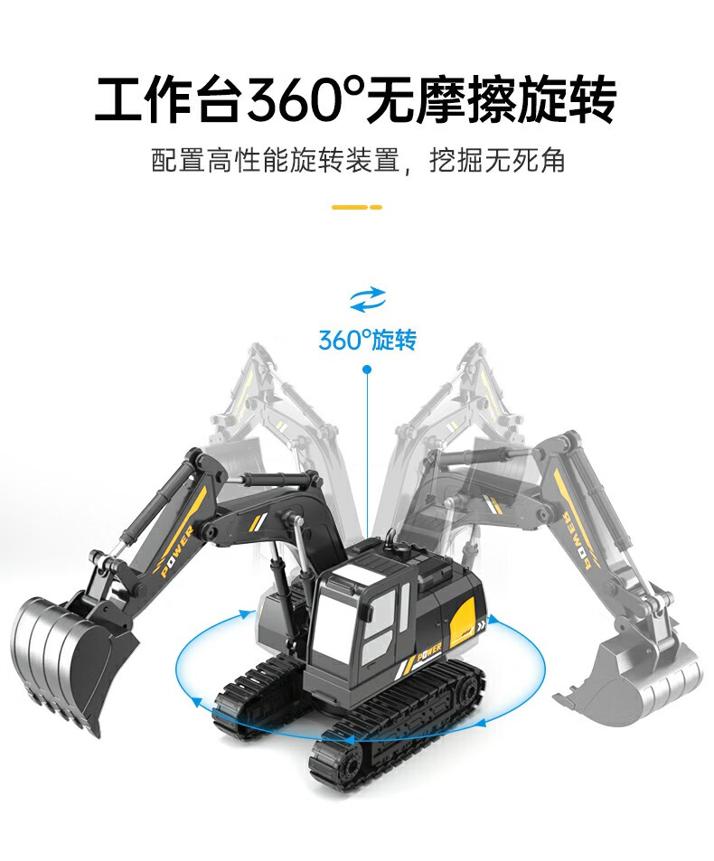 JJR/C儿童玩具遥控车合金挖掘挖土机工程车电动挖机模型男孩