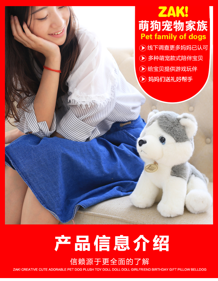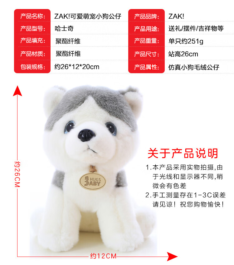 zak!毛绒玩具可爱萌宠小狗二哈公仔